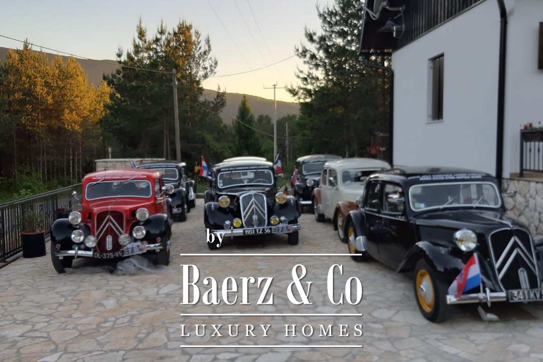 Large parking lot and yard around the house with barbecue. The property has well-established year-round tourism.