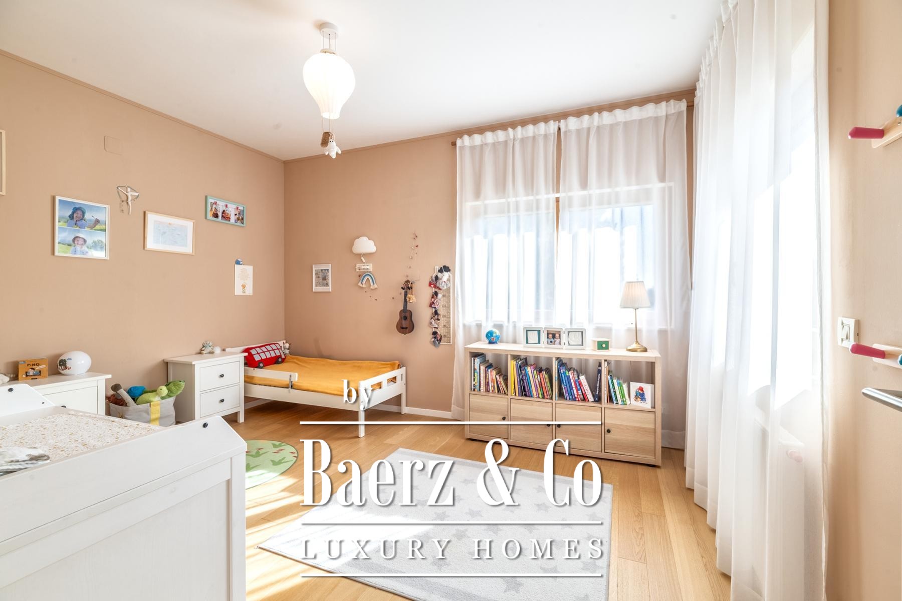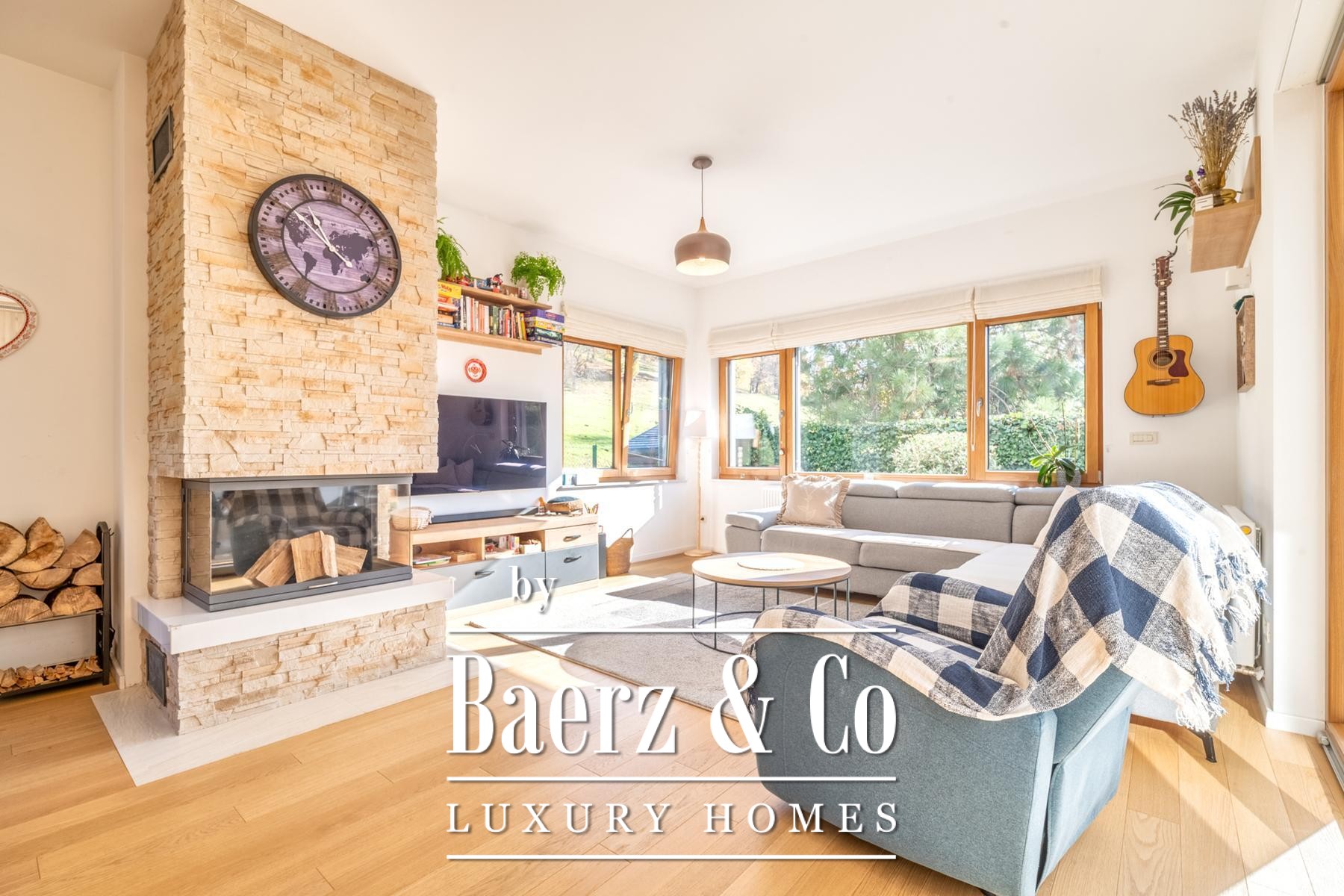 The ground floor opens with an entrance hall, blending seamlessly into a living area bathed in natural light, which transitions elegantly to a 14 m² open terrace and 58 m² private garden. The kitchen and dining area form a gentle social hub, while upstairs provides three bedrooms—one adaptable as an office—and polished bathrooms. The basement offers a discreet storage room, an additional bathroom, and two further bedrooms, allowing privacy for guests or family.