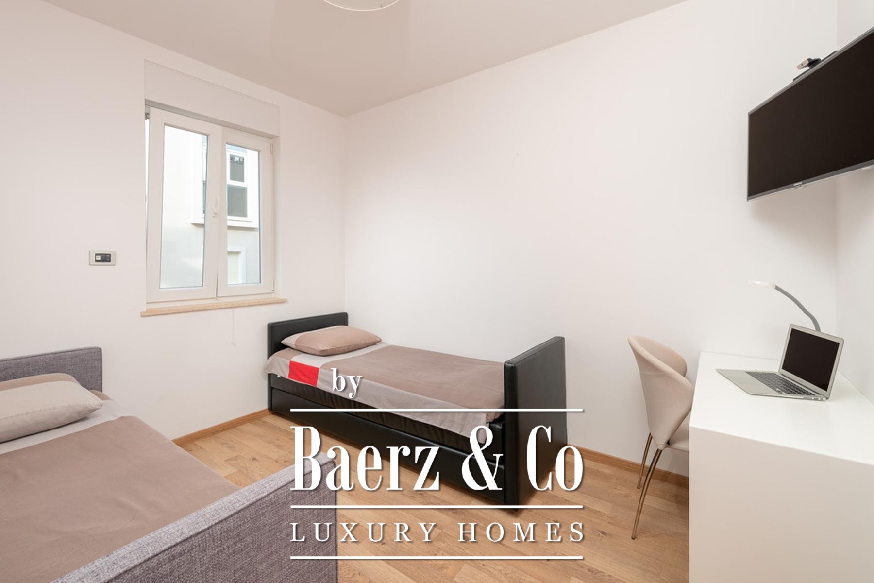 The apartment includes a private 34 m² closed garage for two cars, a 6 m² storage room, an outdoor parking space, and a versatile 28 m² area with natural light and ventilation—ideal for a gym or sauna—accessible by a private hallway. Seamlessly combining security, utility, and authenticity, this luxury apartment for sale in Podstrana preserves the rhythm of coastal life and grants discreet access to amenities and the timeless allure of the Adriatic.