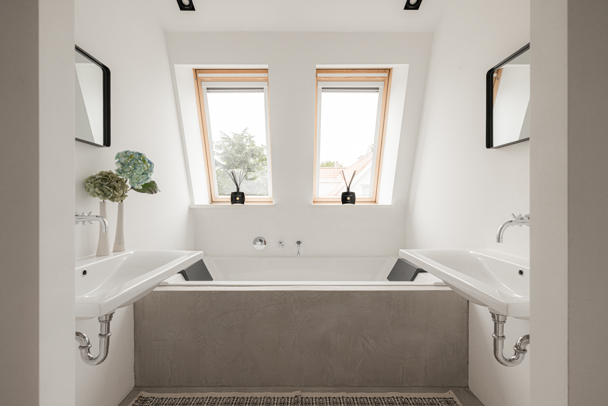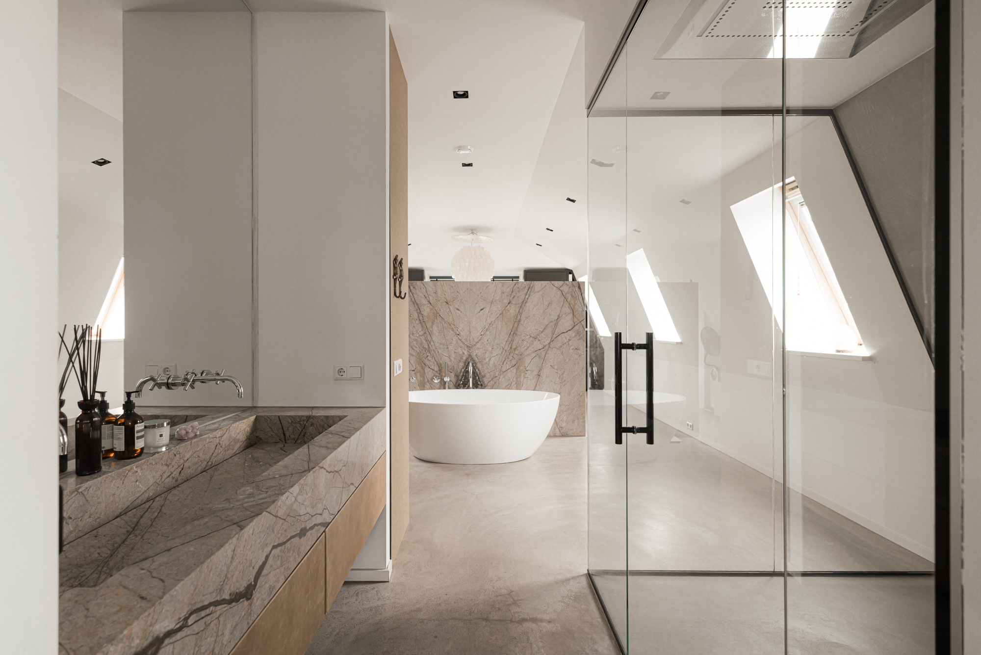 Each of the three bedrooms has its own en-suite bathroom. The master bedroom includes a walk-in closet, cleverly connecting the luxurious bathroom to the sleeping area.