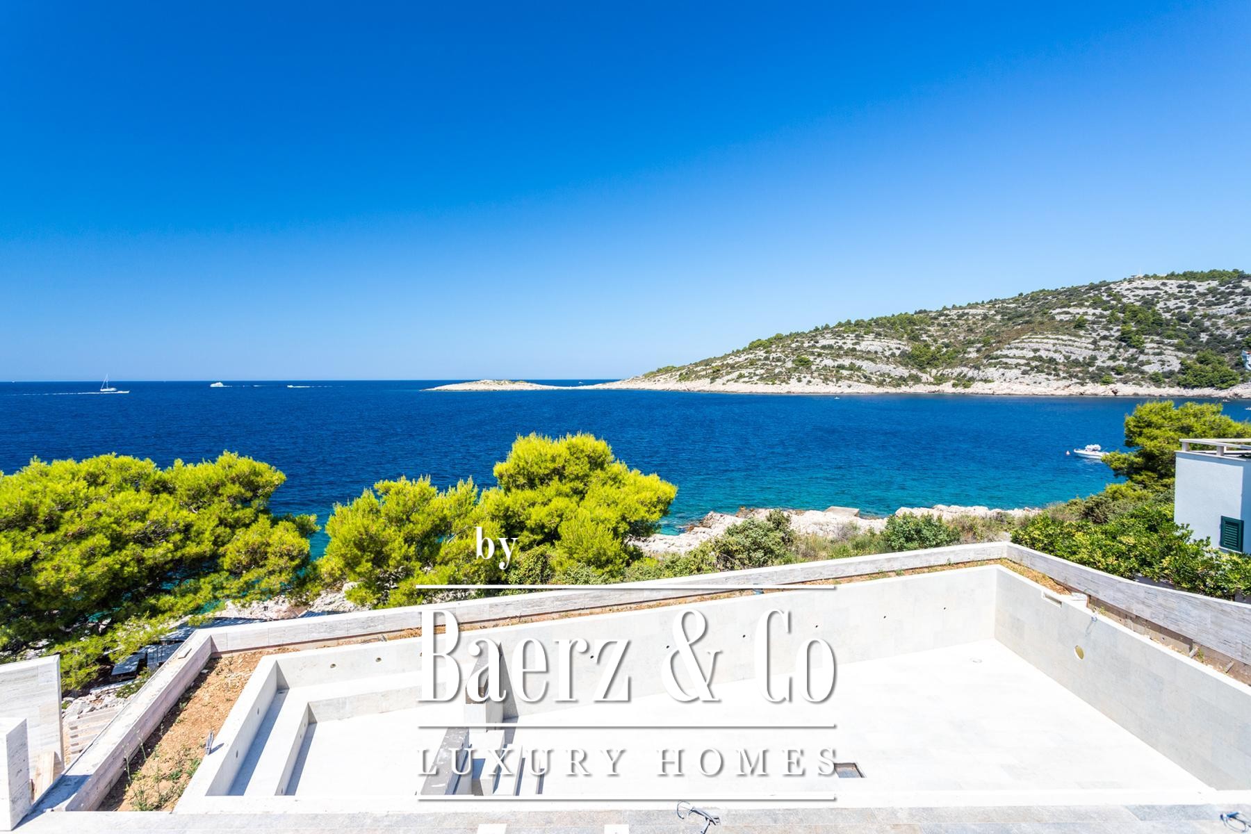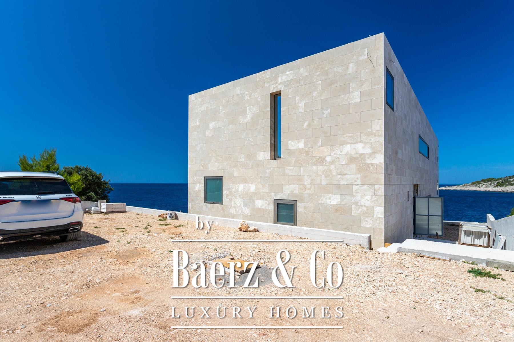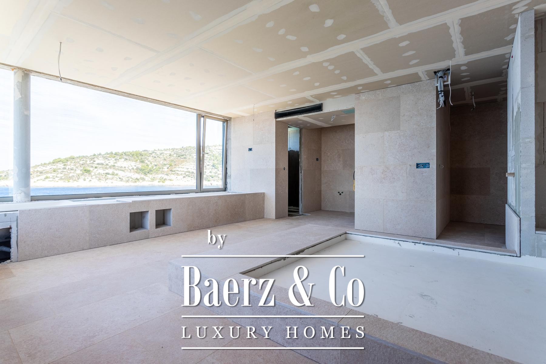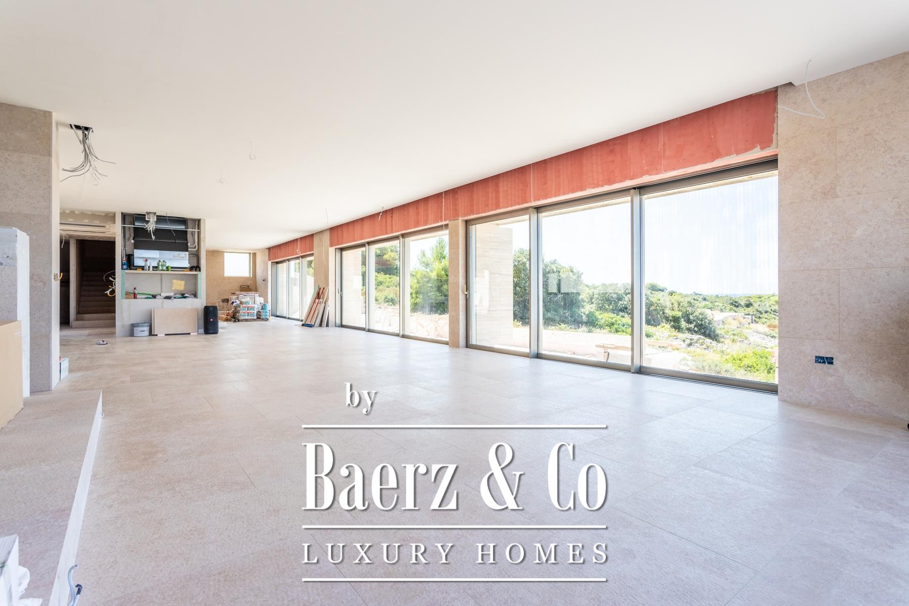 with bathroom and wardrobe, laundry room. It also has five parking spaces, a barbecue area with an outdoor kitchen and dining area.The villa is under construction and the work is expected to be completed in decembar 2024. High-quality materials will be used in the construction of the villa, stone, tiles, first-class American walnut parquet, Grohe sanitary ware, Mitsubishi multi VRF system air conditioning throughout the villa, and the furniture will be modern, designer, inspired by a contemporary approach, and designed to fit into the natural environment of the space. The villa will also have a modern elevator of the Otis brand, made according to the dimensions of the villa.For all other information on request.