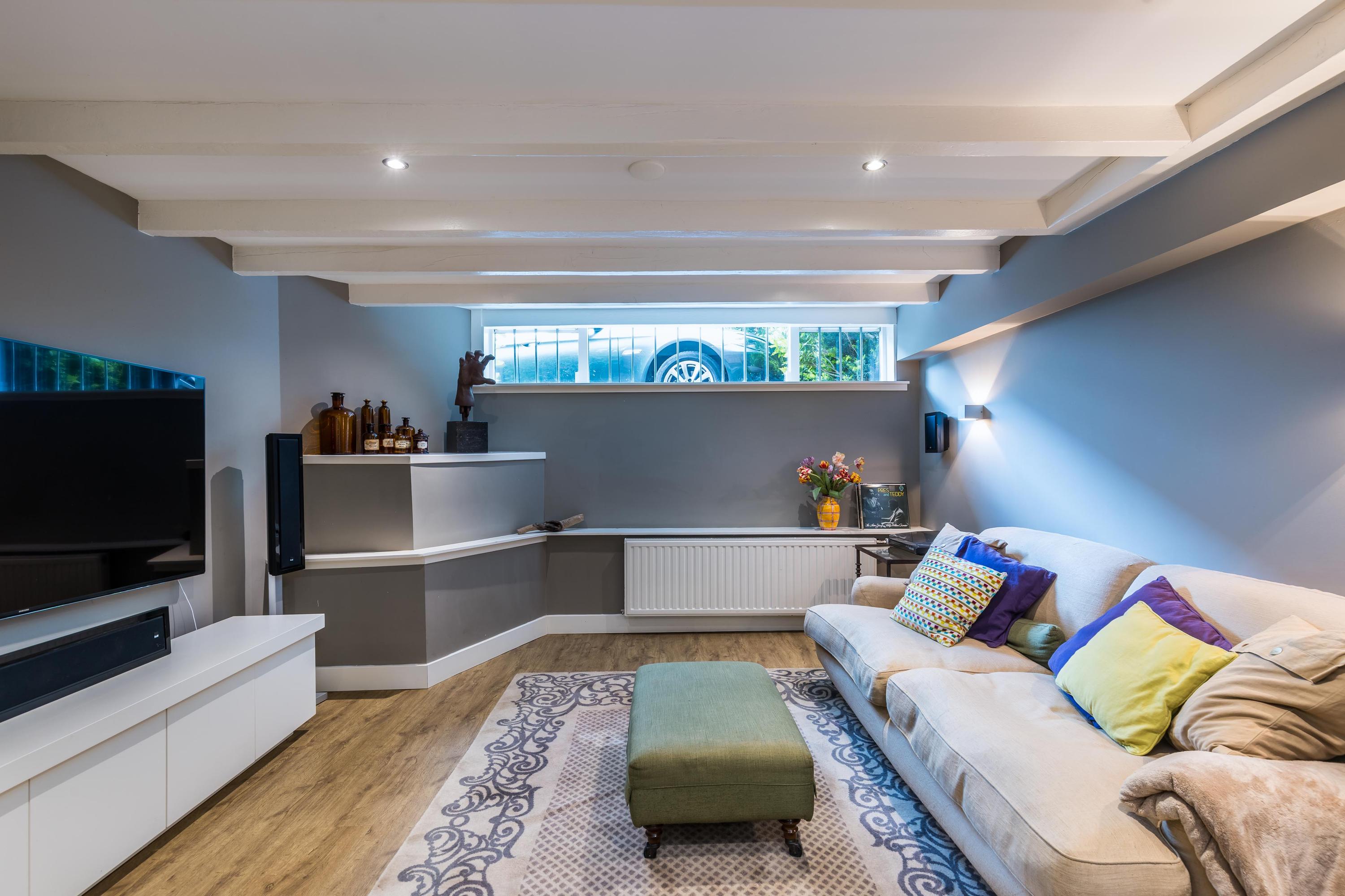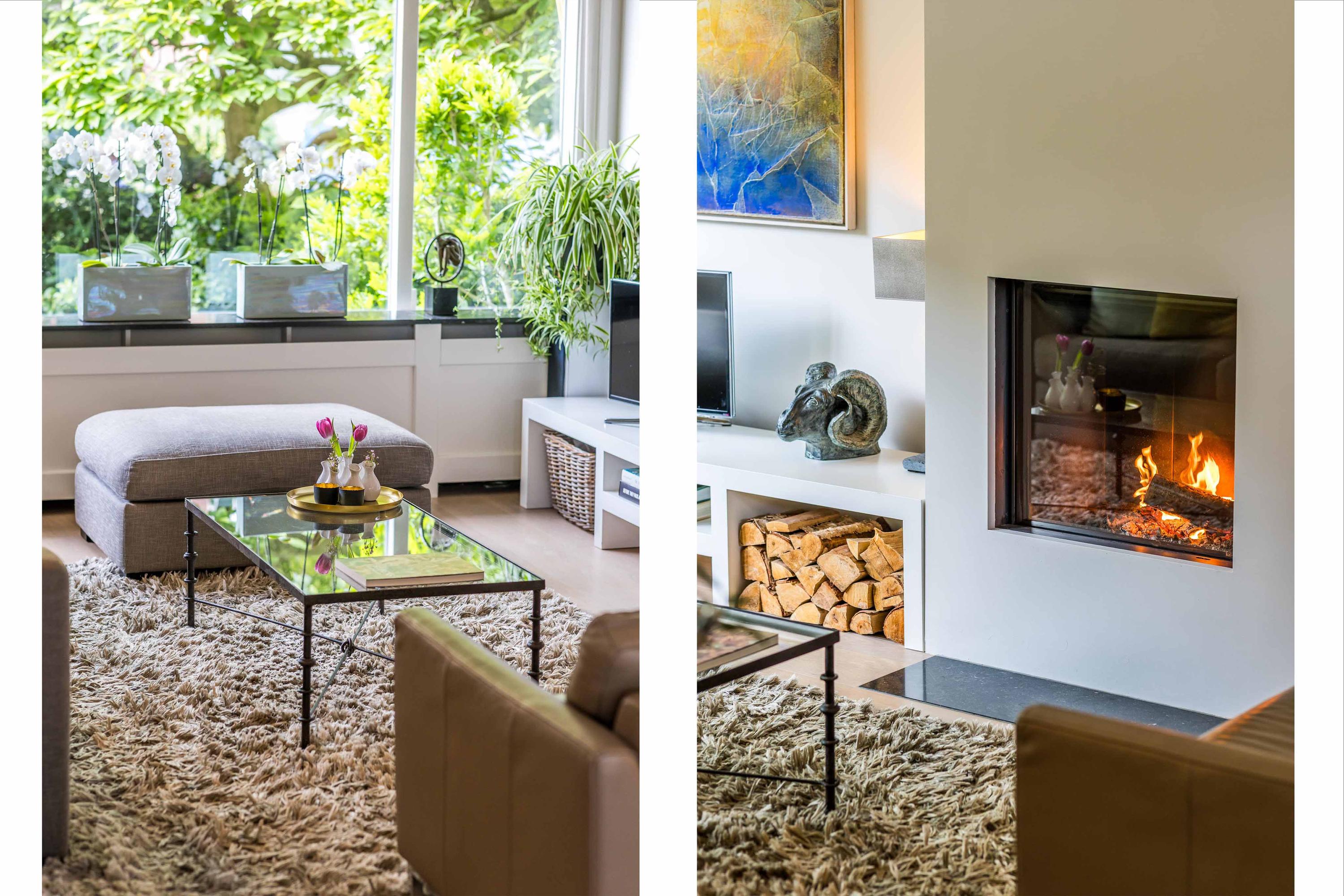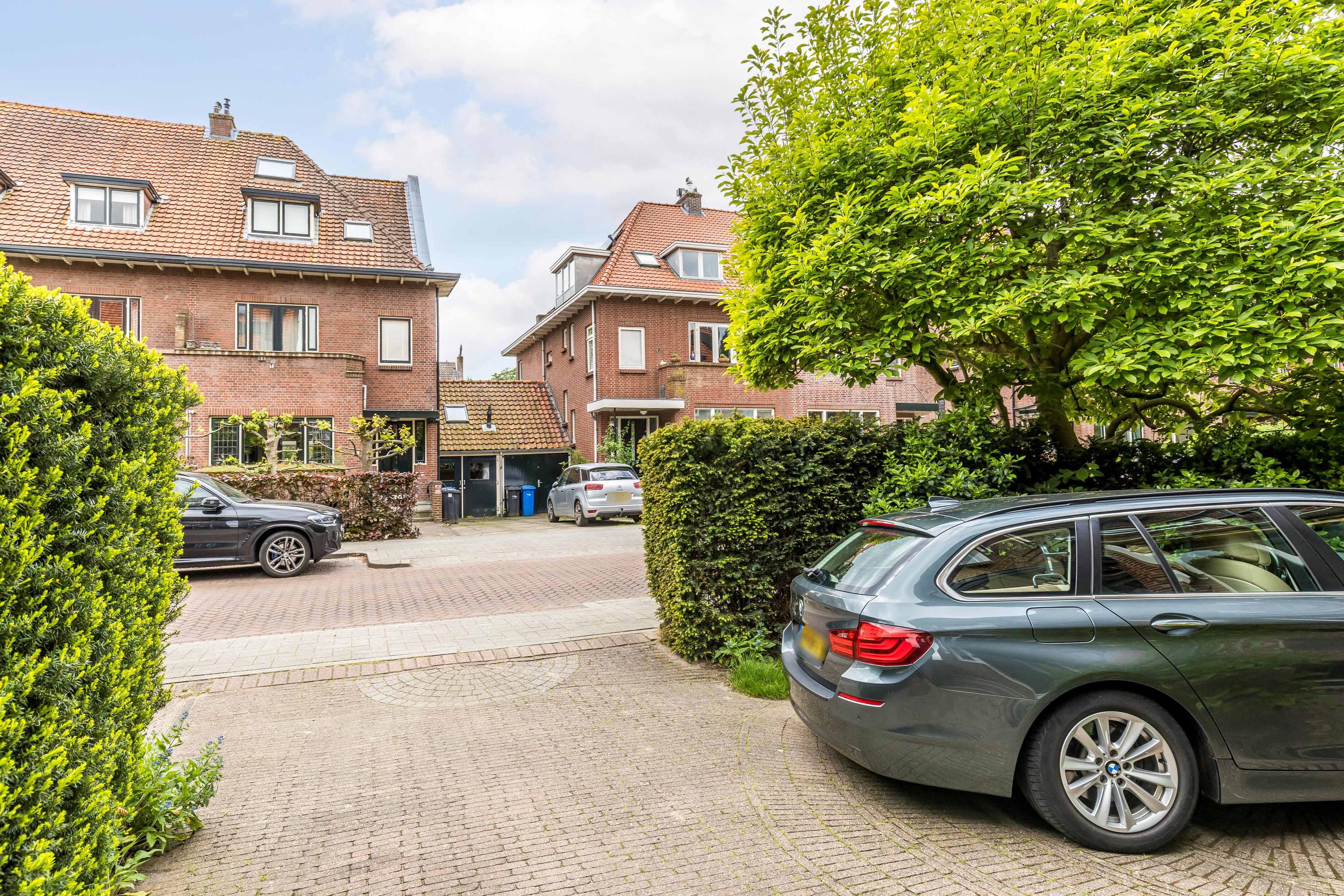 Ground floor: Entrance, light and spacious hall with extra spacious toilet with washbasin, 2 staircase cupboards for coats and shoes, beautiful wide and light living room with an oak parquet floor, the high-efficiency wood-burning fireplace that radiates a wonderful, comfortable warmth. The kitchen-diner is situated in the attractive extension at the rear. This extension has been executed to perfection, so that it feels as if it has always been like this. The gas-fired fireplace at the head of the dining table is the mood maker for many cozy dinners and drinks at home. From the kitchen-diner there is access to the basement with laundry room and to the utility room that is situated in the side extension. At the front is the storage function/shed with access to the street, ideal for putting a nice (cargo) bike or scooter inside and at the rear the utility room function with high storage cupboards, a washbasin unit, which is handy for sports shoes, coats or if you have pets. The utility room also has a door to the back garden, so you can easily go to the back garden with a green bin, for example. In addition, the back garden has a back entrance at the rear, connecting to the back path.