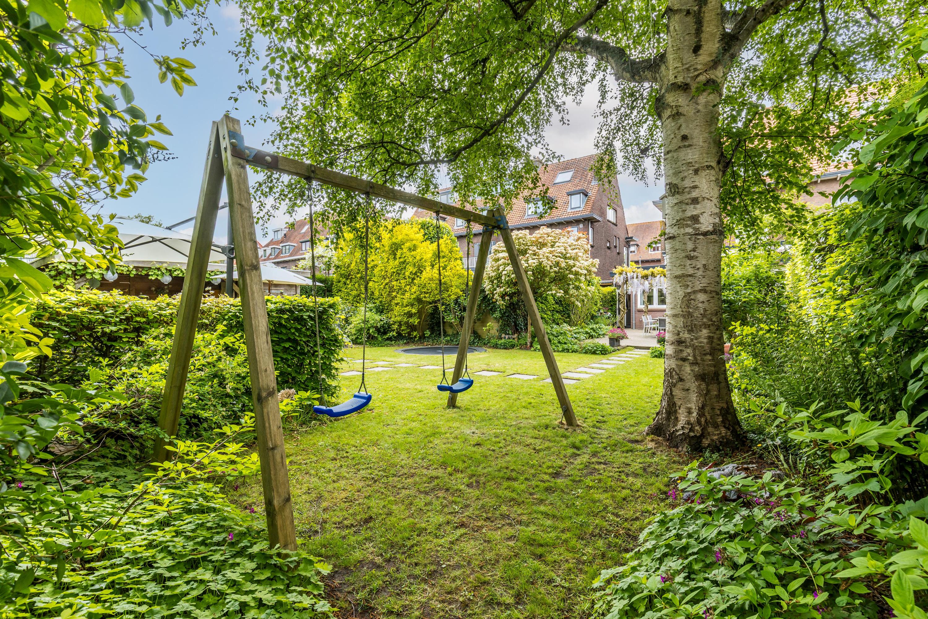 And that is the case with this truly sublime corner townhouse. Superlatives are not enough to describe this fantastic house with an unprecedentedly large backyard for this neighborhood. This house has everything you could wish for in terms of modern comfort and nature. Both house and garden have been thought out down to the last detail and everything is just right. The kitchen/diner at garden level is the connecting link between the living floor and the basement. From the kitchen/diner, patio doors give access to the beautiful backyard, which has been designed and created with respect for nature, with 3 terraces, built-in trampoline, swing and a lot of privacy due to the planting.