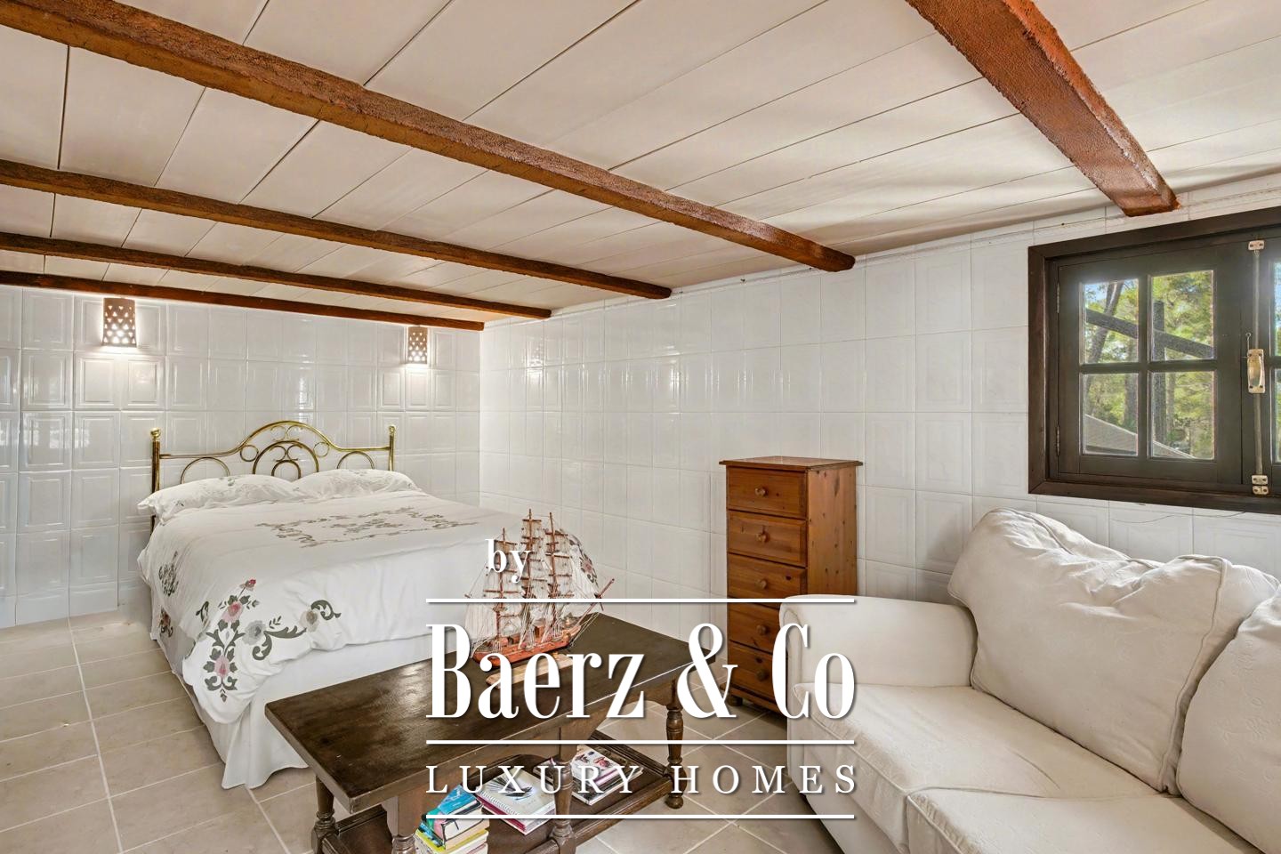 Equipped with solar power, generator, and water delivery, this finca enables independent living rooted in simplicity. In the terraced gardens, an elevated pool looks out over the pines toward the glimmering sea. Access from the road to Sant Elm is straightforward, connecting you discreetly to village life while wrapped in the scents of forest and gentle marine breezes.