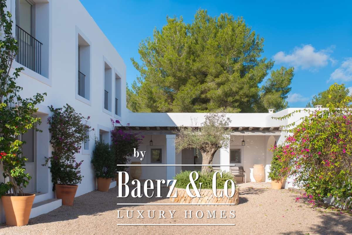 This farmhouse Sant Llorenç de Balàfia resides at the island’s highest valley point, where rolling agricultural land meets forest and mountain views. The property’s terraces open onto a tapestry of olive groves and fruit trees, with vistas extending to the church tower of Balafí and historic walls in the far distance. On the opposite side, the springs of San Rafael bring freshness to the landscape, softening the horizon. Quiet and privacy envelope this 24,215 m² estate, though Eivissa and Santa Gertrudis remain easily within reach.