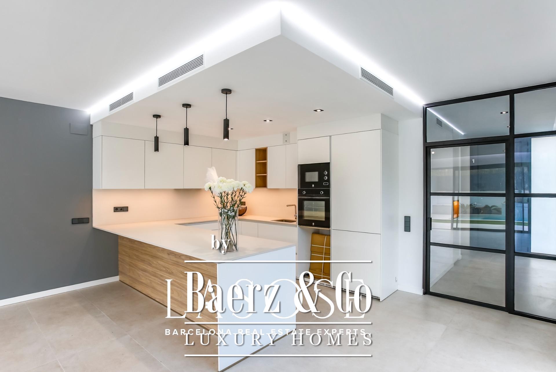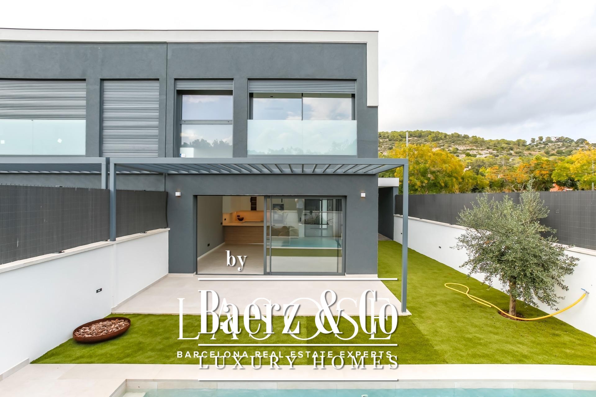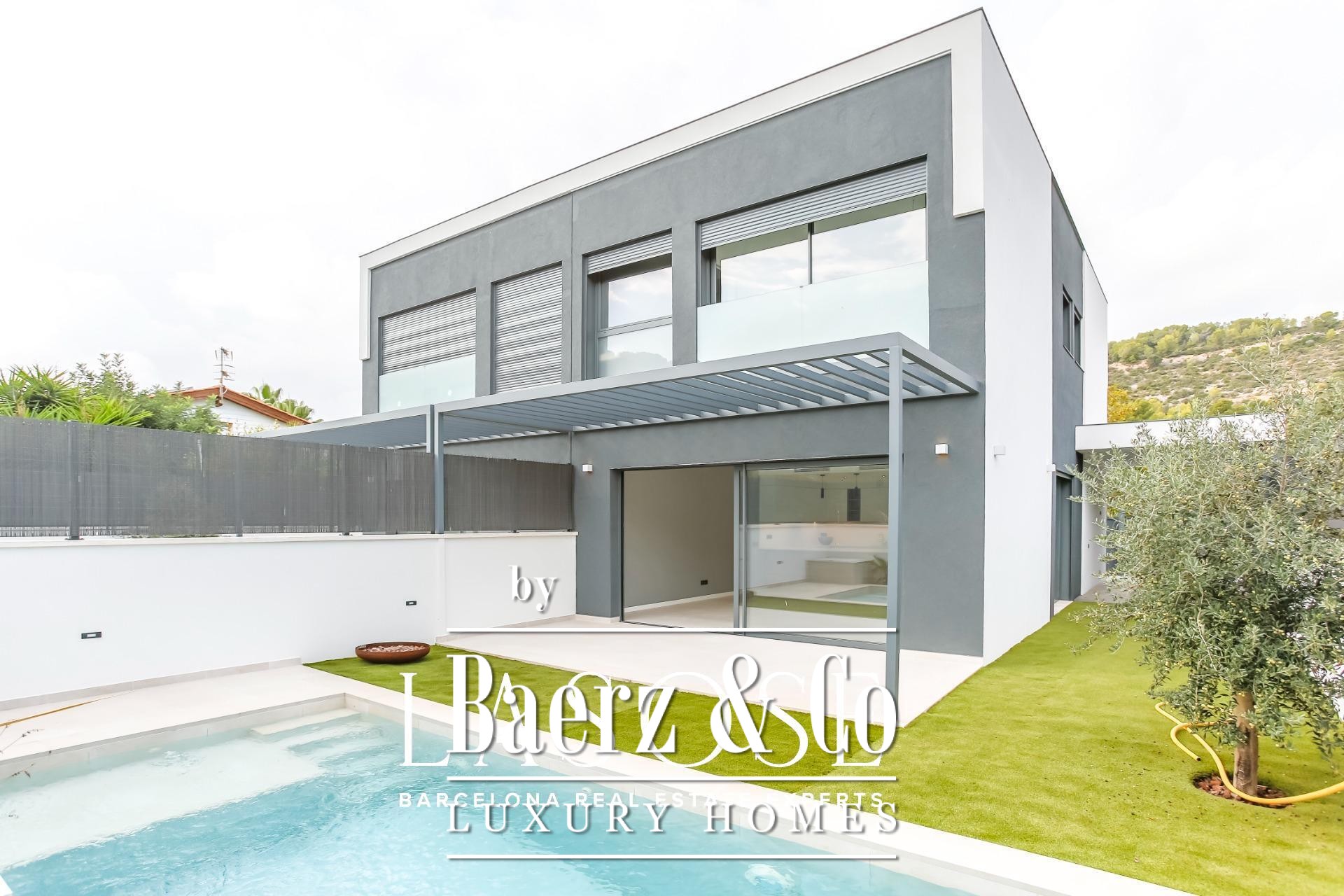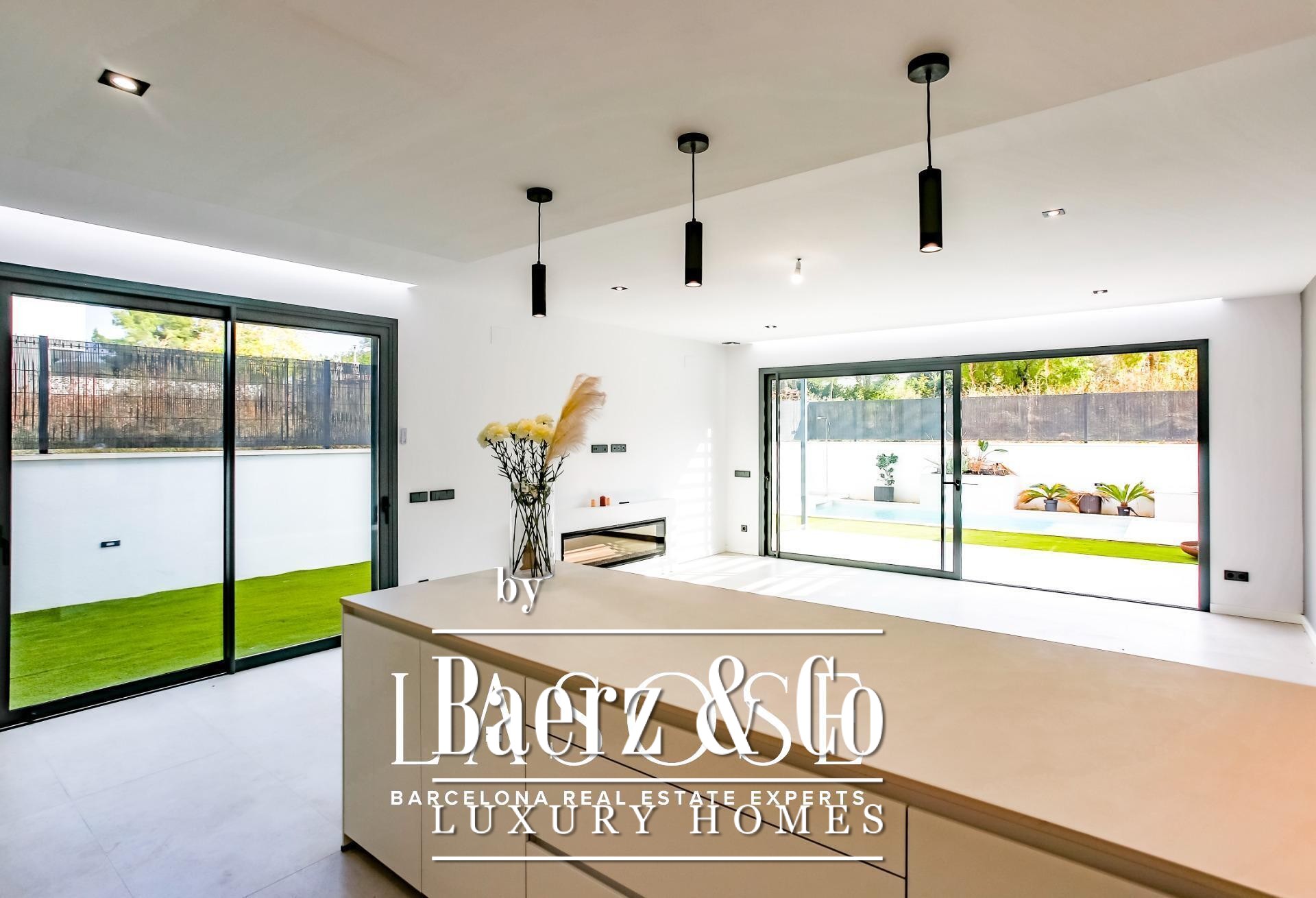 Outdoors, a private swimming pool, terrace, and landscaped garden invite quiet mornings or convivial gatherings. The integrated garage, ample storage, and energy-saving features—including solar panels and aerothermal systems—offer comfort without compromise. This modern villa Sant Pere de Ribes is situated in a coveted residential neighborhood known for its proximity to acclaimed international schools such as the British School of Barcelona, Olive Tree School, Lyceé Bel Air, and Richmond International. Essential services and transport connections are a short distance away, making both daily life and European travel seamless.