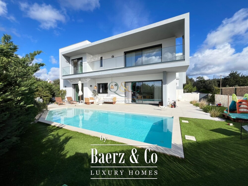 Contemporary house Santa Bárbara de Nexe presents a refined architectural approach, bringing together four bedrooms and three bathrooms across a living area of 273 m². From the moment of arrival, two private parking spaces in the basement provide direct, discrete access to the heart of the house.