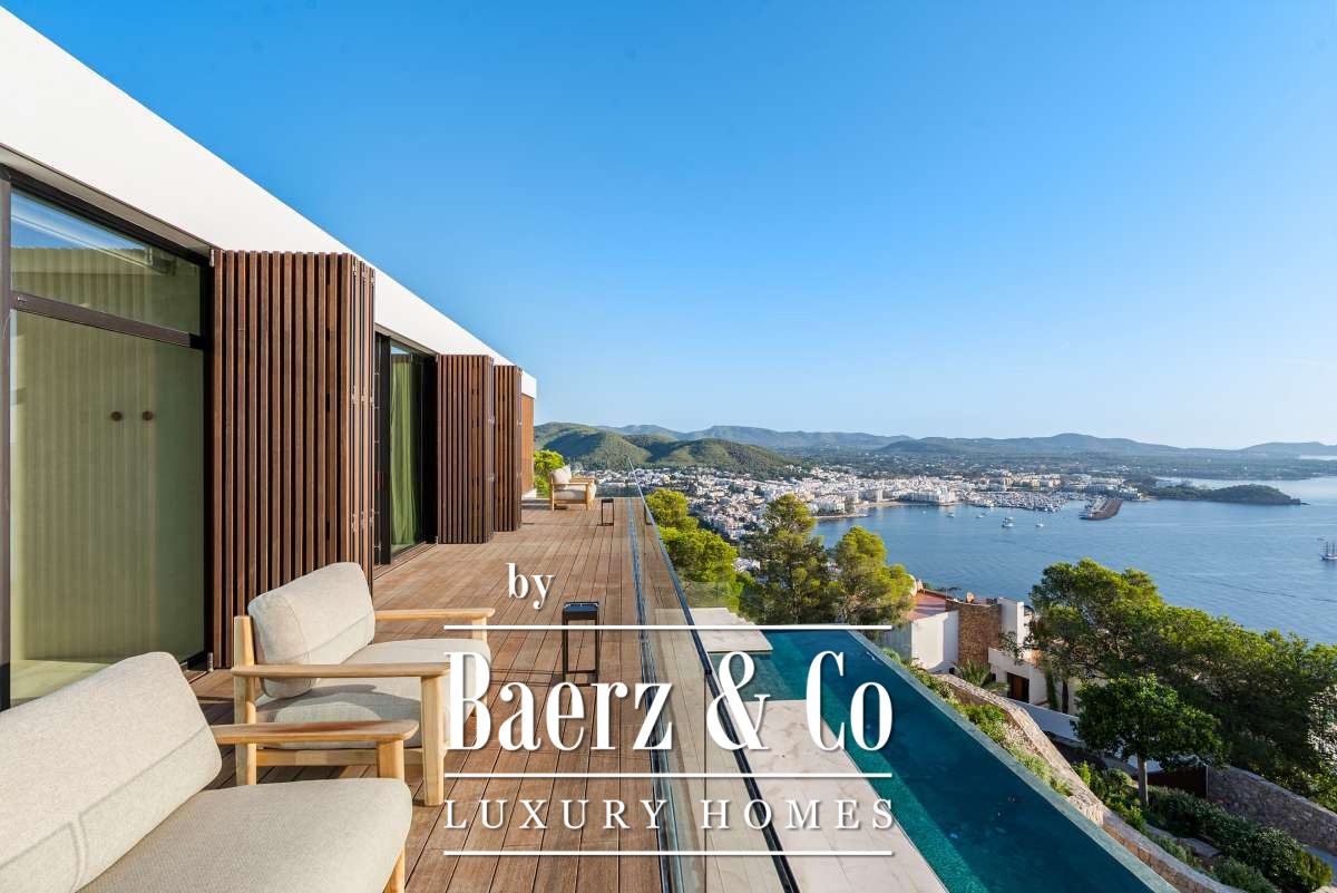 modern comforts such as an osmosis system for purified drinking water, a water softener, and a gas fireplace directly connected to the garden’s gas tank. Everything has been designed for style, efficiency, and a carefree stay.The outdoor area – a Mediterranean oasis of experienceThe garden, designed by Eivissa Garden, is a true showpiece. With subtle lighting, an automatic irrigation system, and an integrated music installation, the atmosphere at night is just as magical as during the day.At the center of the outdoor space lies the saltwater pool, surrounded by spacious terraces and greenery that combine privacy with Mediterranean charm. The view from here is truly impressive: the valley, the hills, and the Mediterranean Sea form a panorama that no other house in the area can match. Here, indoor and outdoor living blend seamlessly: lounge, dine, or simply enjoy the peace and Ibiza sun.Casa Rise is not a standard villa but a carefully designed home where luxury, comfort, and atmosphere enhance one another. Everything fits perfectly – from architecture and finishing to technology and landscaping.Curious to experience it for yourself? Schedule a viewing and discover the unique feeling Casa Rise has to offer.