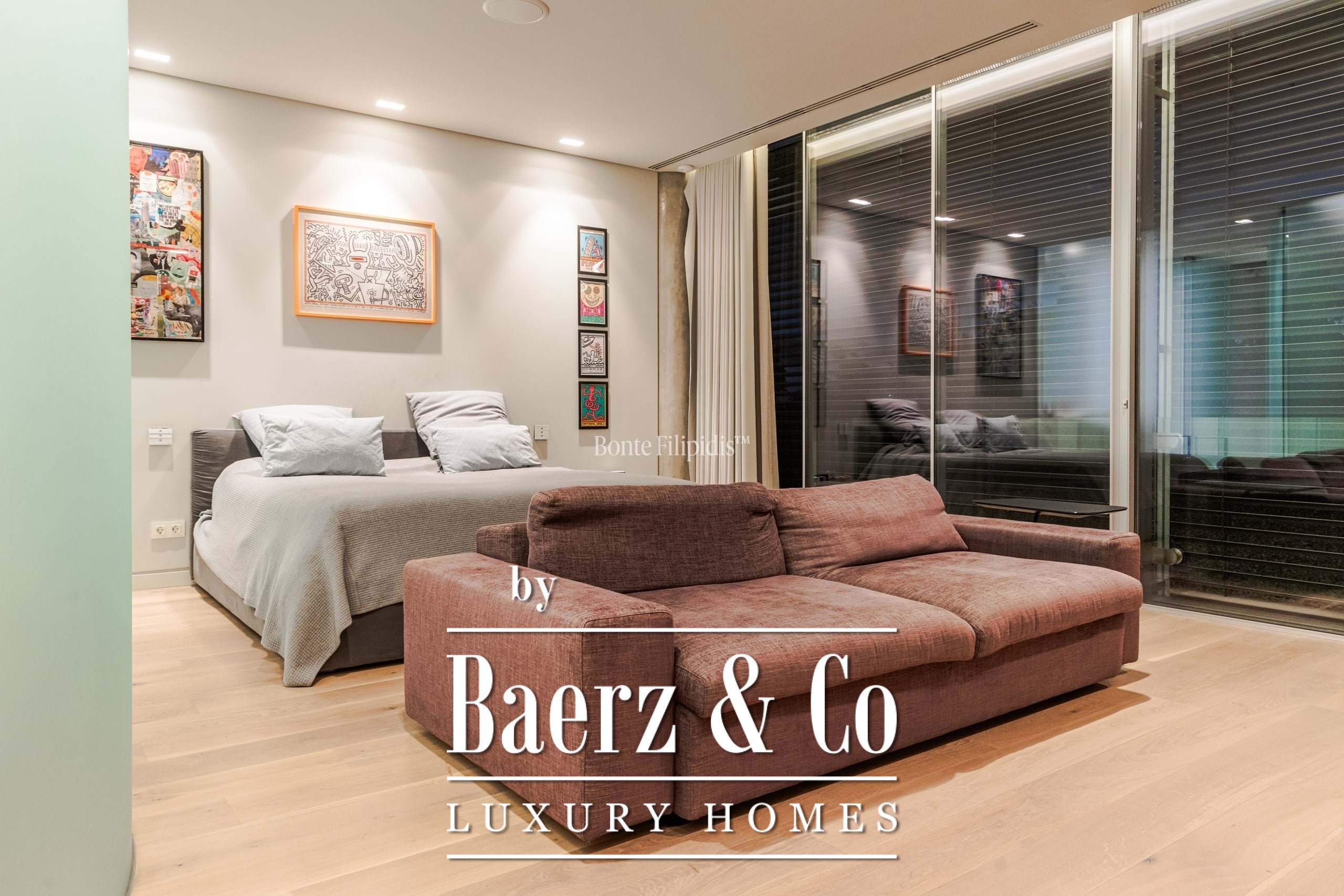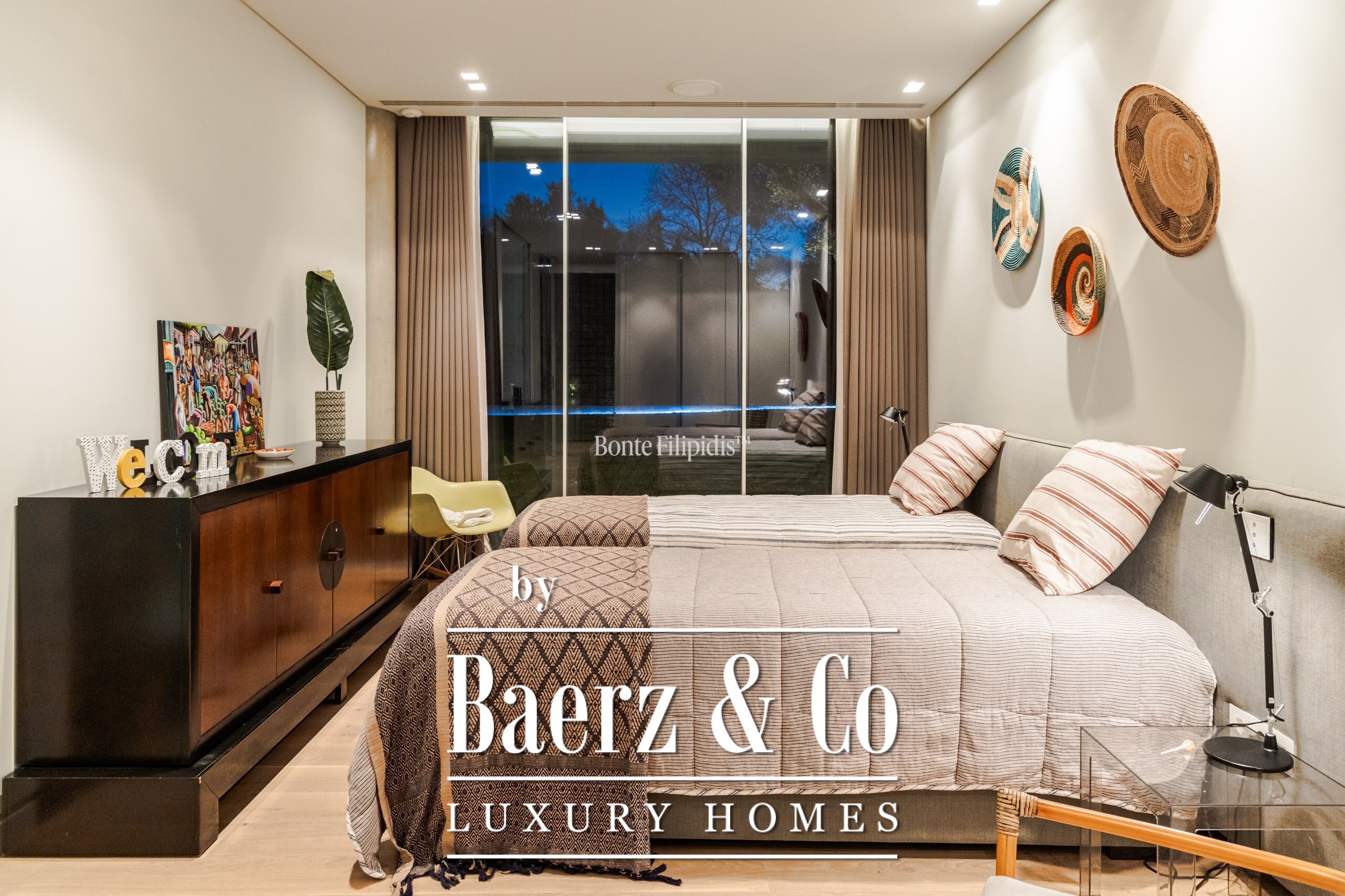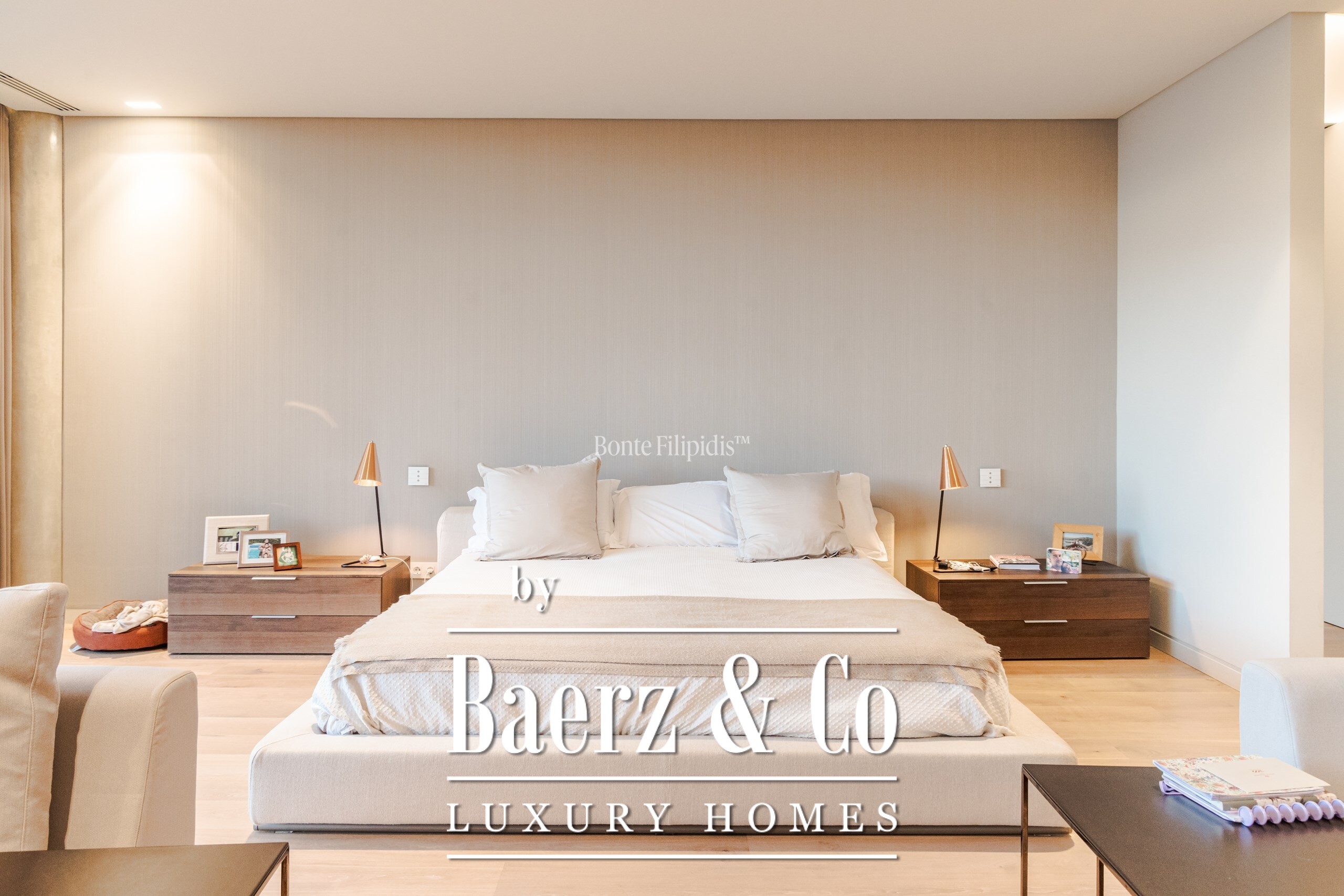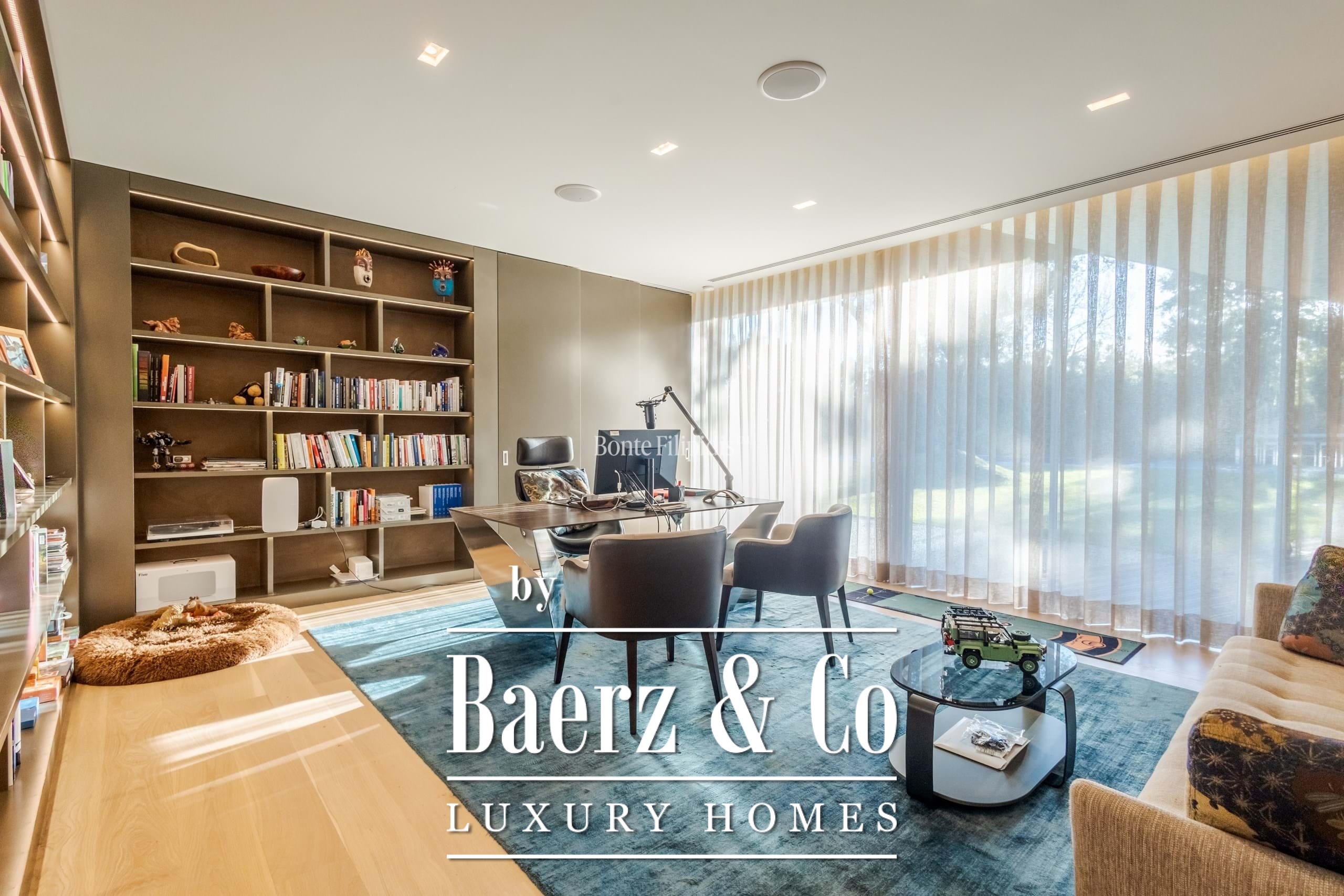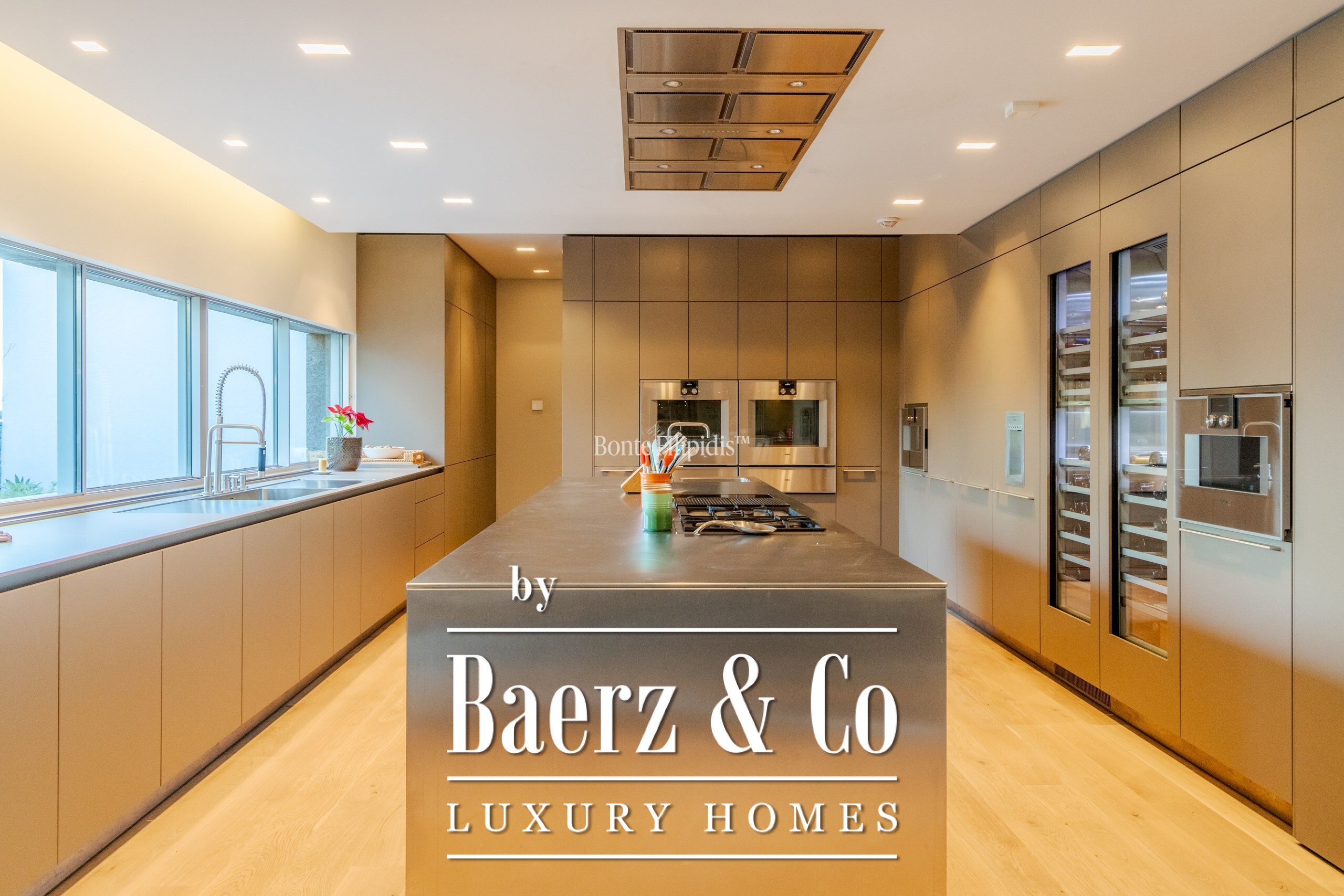 The ground floor features an expansive living area with direct access to the outdoor dining space and barbecue zone. This level also includes a home theater, a fully equipped office overlooking the garden, a state-of-the-art gym, a gourmet kitchen fitted with Gaggenau appliances, and a guest suite.