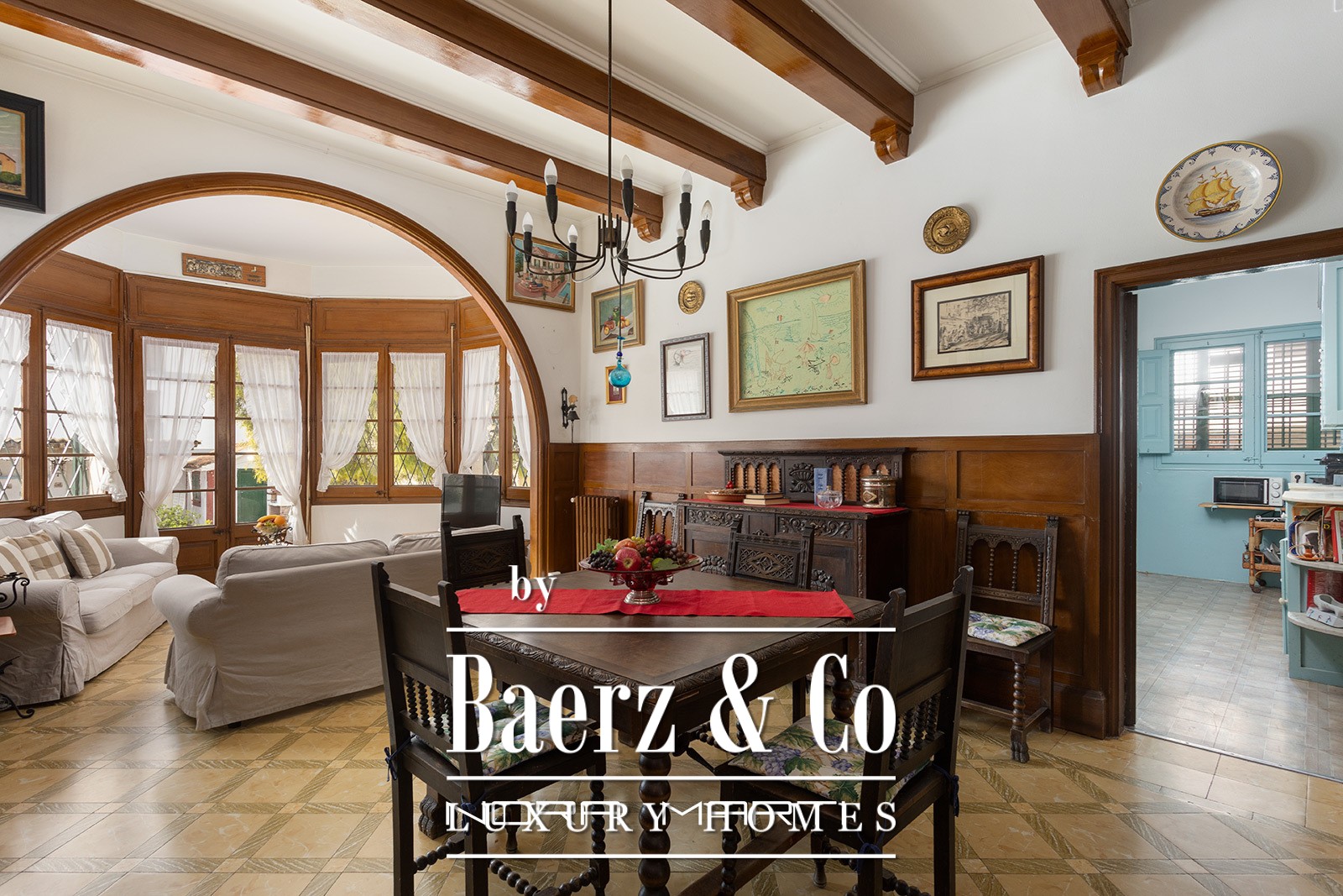 Complementing the main house is an additional residence with two bedrooms, a bath, a garage, and a solarium, suited to guests or service. The situation, 100 meters from the beach and within walking distance of Sitges’ amenities, offers a balance of centrality and discretion rarely found in the region. For those seeking a property with provenance, ample space, and privacy, this historic house in Sitges stands as a distinctive opportunity.