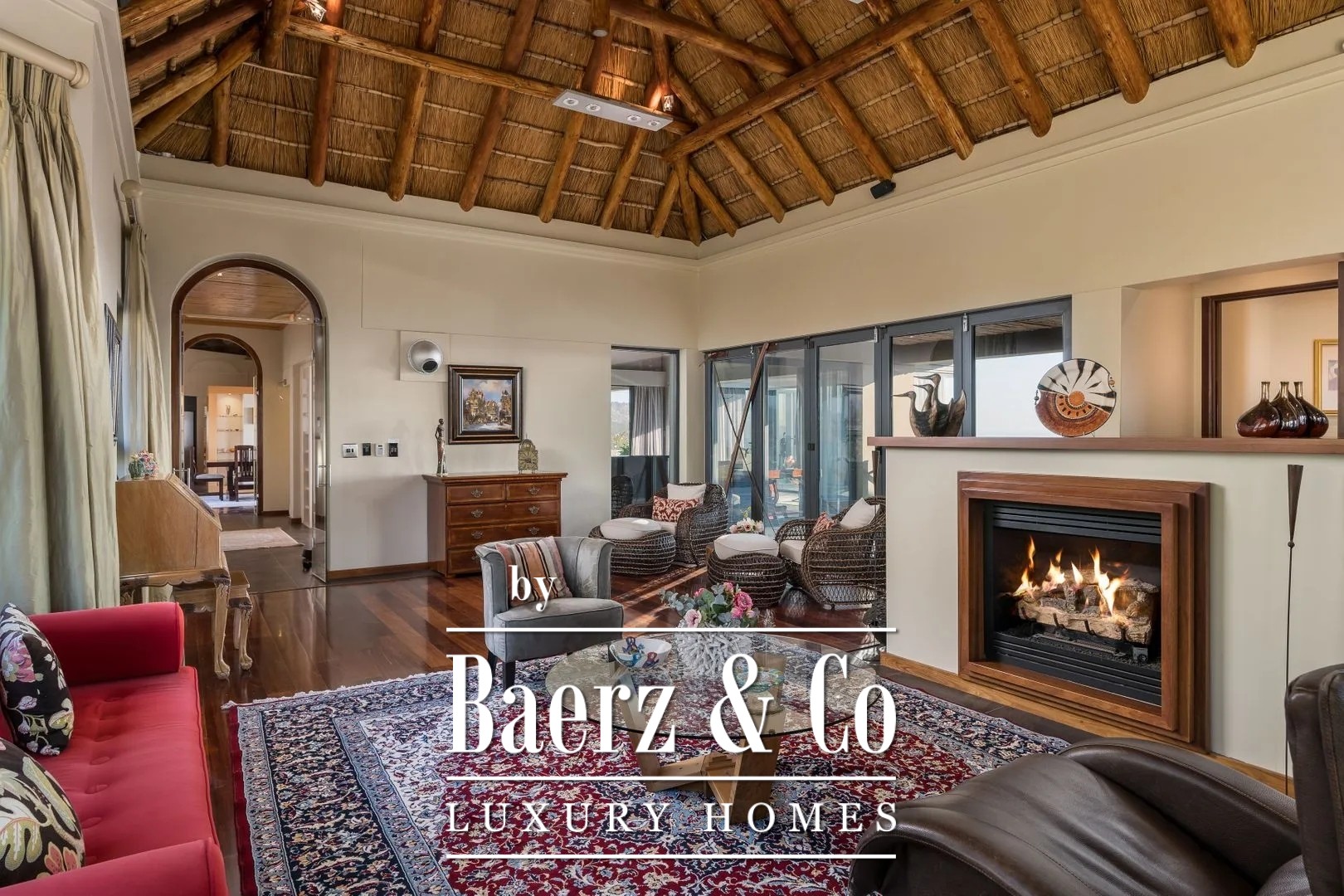 The Dutch owners built this fabulous thatched manor house in 2006, complete with gatehouse and a separately located guesthouse/manager’s residence on an extraordinarily beautiful site. The entire property is designed in the characteristic African rondavel style. It has become an extraordinary dream home offering all contemporary European luxury and comfort; nothing is lacking.