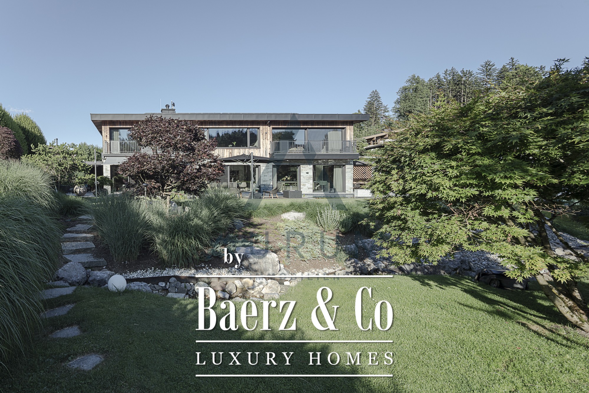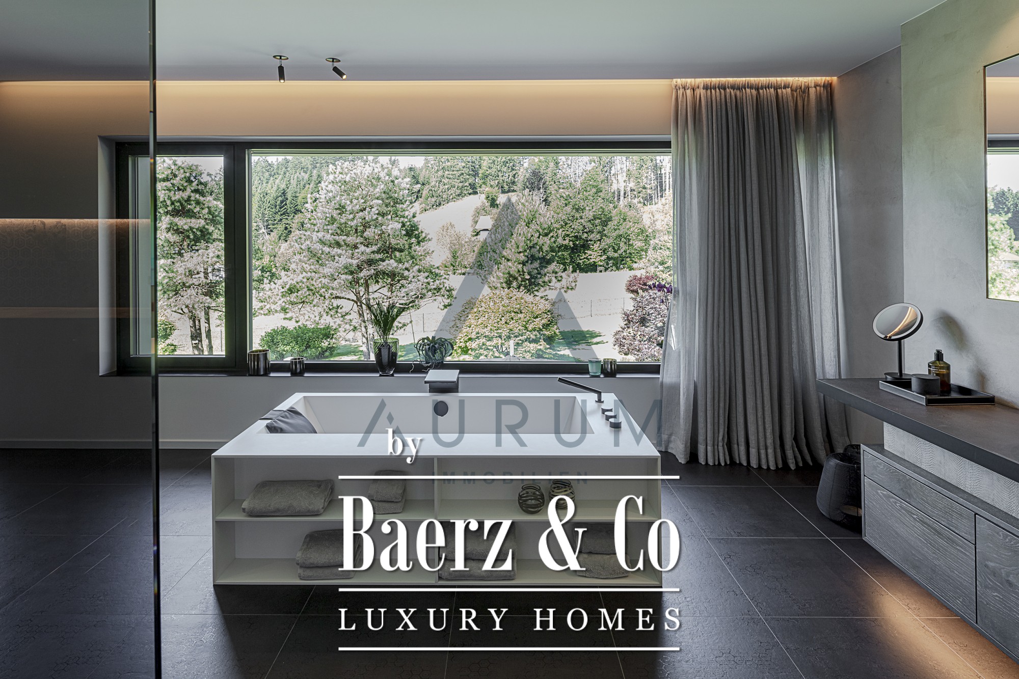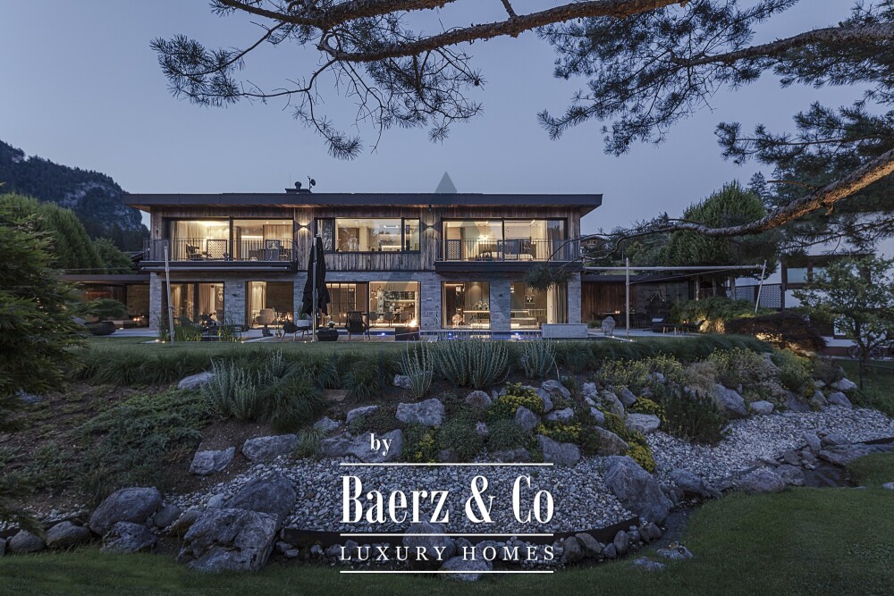 Technical mastery underlies the property’s sustainability and comfort. Geothermal energy, chilled ceilings, and a KNX-controlled ventilation system create a serene and energy-efficient interior. Every material—natural stone, bespoke carpentry, fine fixtures—is curated for timeless quality. The designer kitchen, fitted with Gaggenau appliances, sits at the heart of the home, while the master suite offers a private retreat with a luxurious bathroom and dressing room. Additional highlights include an advanced security system, multi-room SONOS sound, and parking for four vehicles.