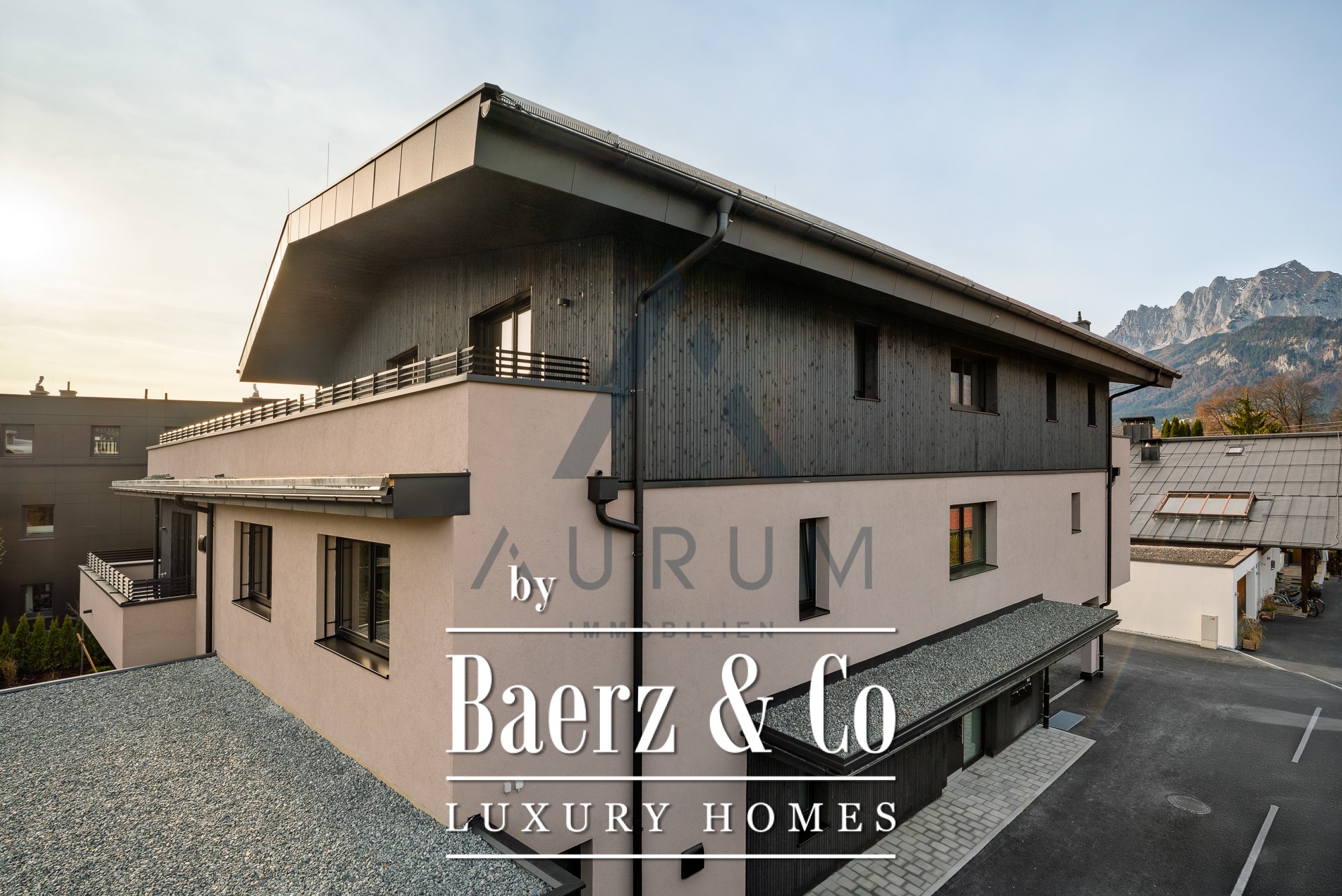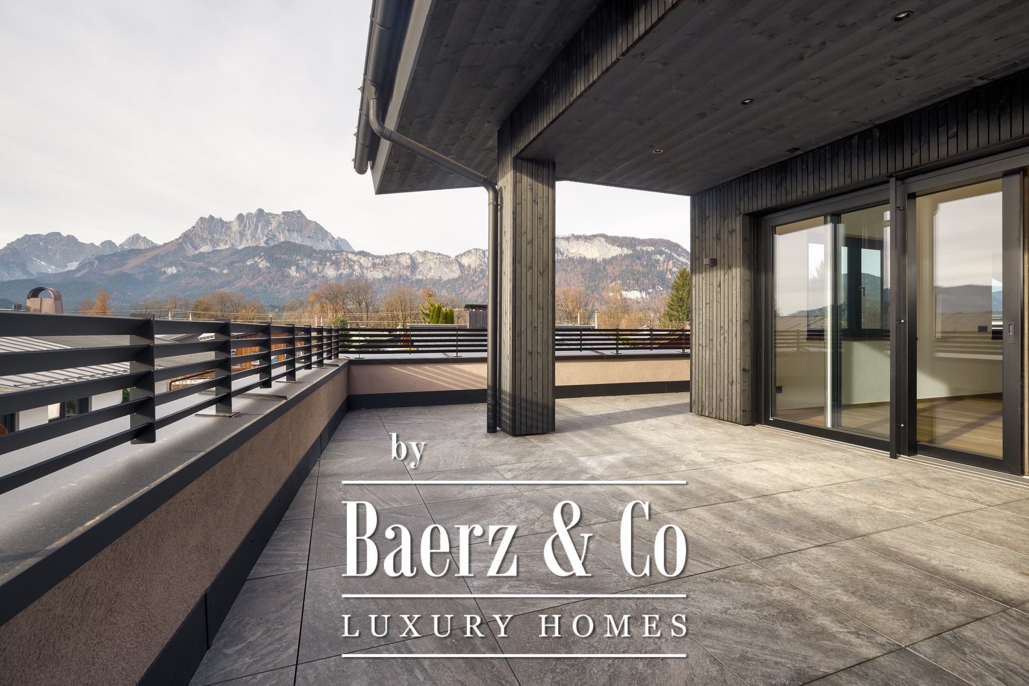 The penthouse St. Johann in Tirol brings urban elegance and mountain vistas into rare alignment. Set within a discreet new building of just five refined residences, this 175 m² home pairs a central address with thoughtfully conceived privacy. Entering the penthouse, light becomes a signature, drawn through expansive glazing onto the 110 m² sun terrace, where uninterrupted views of the Kitzbüheler Horn and Wilder Kaiser define the setting. Inside, three bedrooms and two bathrooms, marked by clean lines and high-grade fixtures, support daily comfort. The presence of a separate dressing room and underfloor heating deepens the experience of understated luxury. A fireplace anchors the living space with authentic warmth. Sustainable building methods and a renewable energy system echo a mindful approach to the future. Direct lift access, a cellar compartment, and two covered parking spaces add ease. Spend each day just steps from St. Johann’s renowned amenities—shops, schools, medical services—set against a landscape of ski slopes, cross-country trails, and hiking routes. This penthouse apartment is both a retreat and a vantage point on the best of alpine life, making it a compelling opportunity for those seeking a luxury penthouse for sale in St. Johann in Tirol.