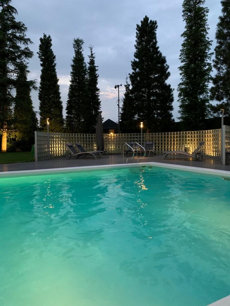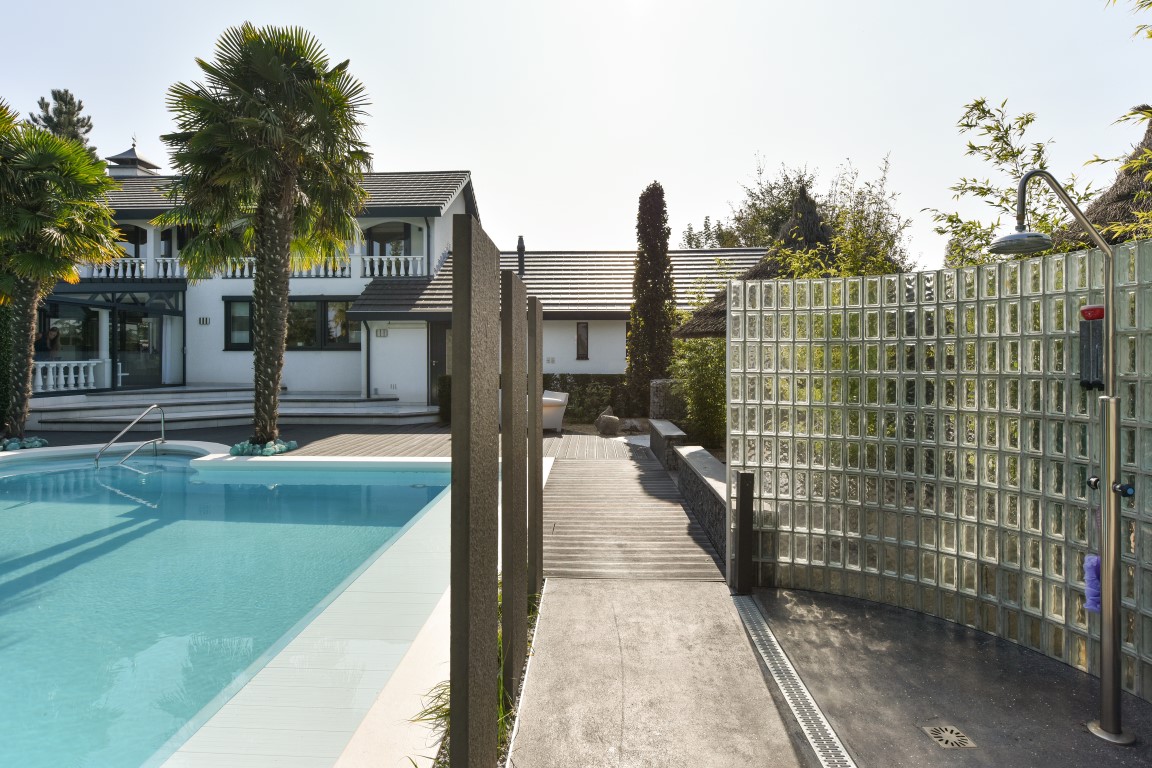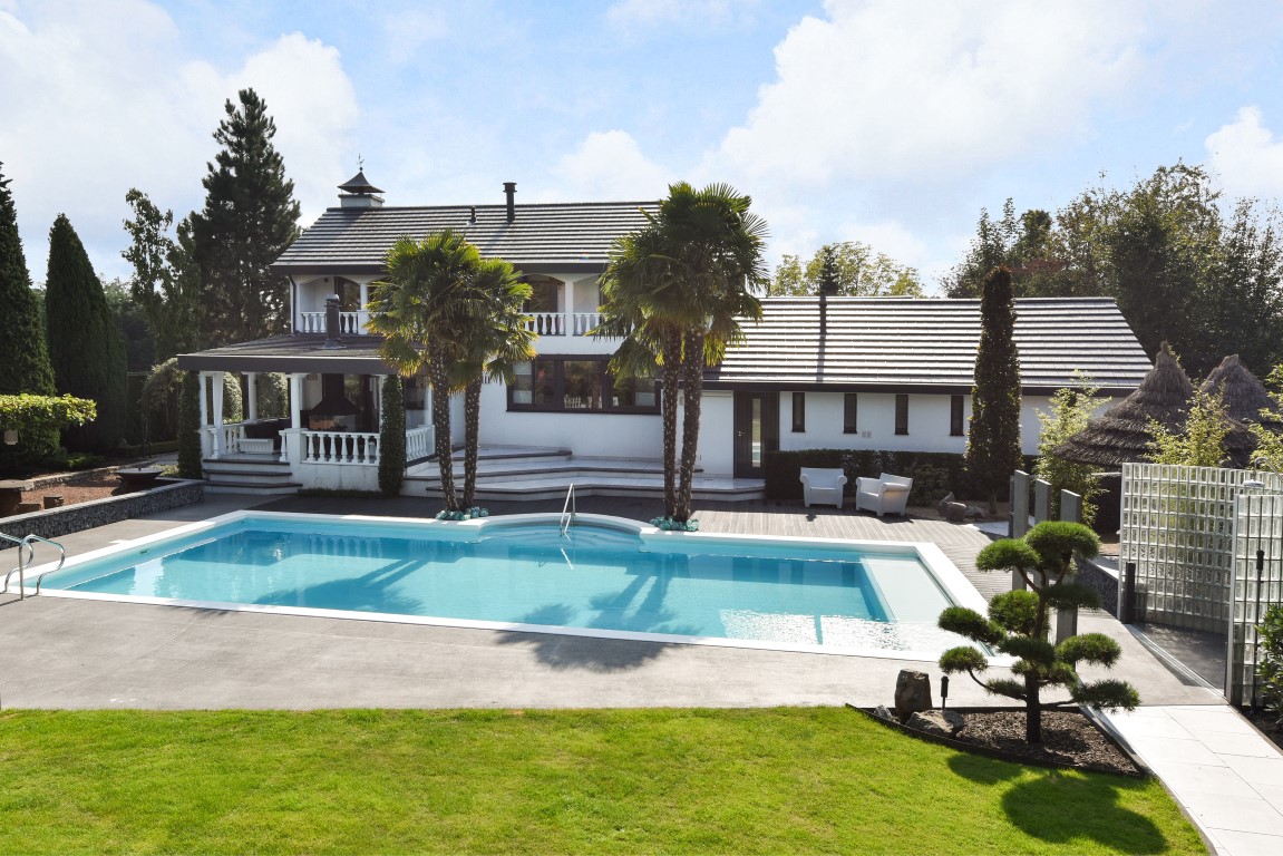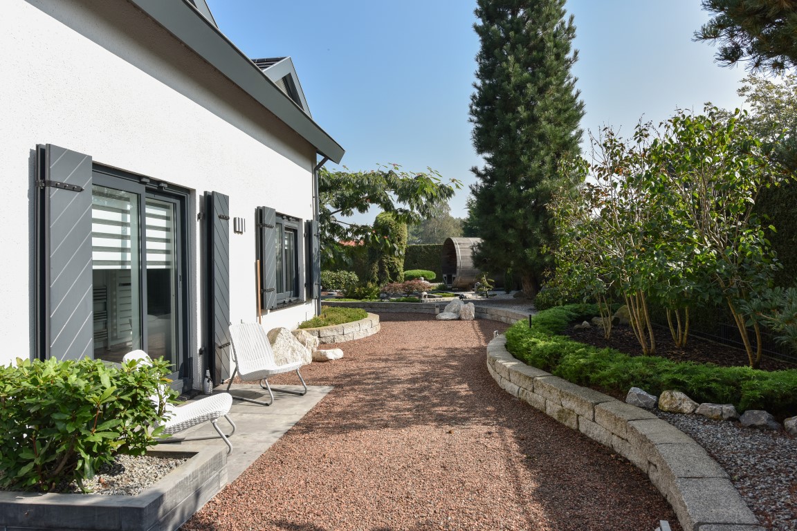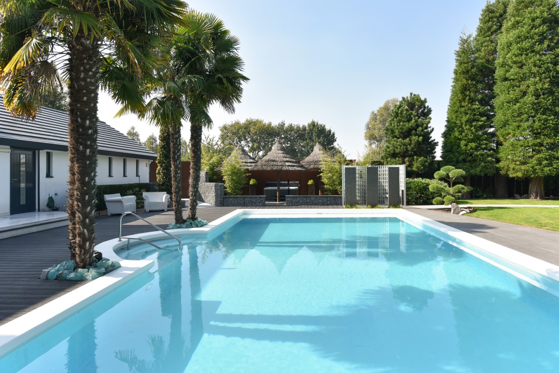 Ook buitenshuis is aan werkelijk ieder detail aandacht besteed en zijn vele luxes aanwezig. Denk hierbij aan het verwarmd zwembad, een jacuzzihoek met buitendouche en buitenhaard, de sfeervolle veranda aan de achterzijde met gastafelhaard, een 2e veranda aan de zonzijde met buitenkeuken, hoogwaardig groen rondom, grondpomp met beregeningsinstallatie (roestvrij water), keramisch straatwerk, een hout gestookte sauna, smaakvolle tuinverlichting, etc.
