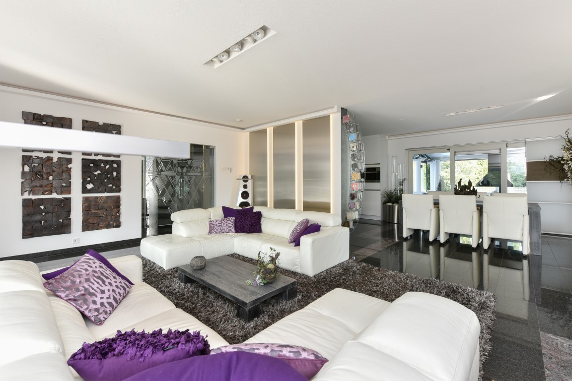Direct bij binnenkomst via de ruime hal/entree valt uw blik op de met kristal uitgevoerde glazen toegangsdeuren naar de living. Een toonaangevende eerste indruk, een van de velen welke zullen volgen tijdens uw rondgang.