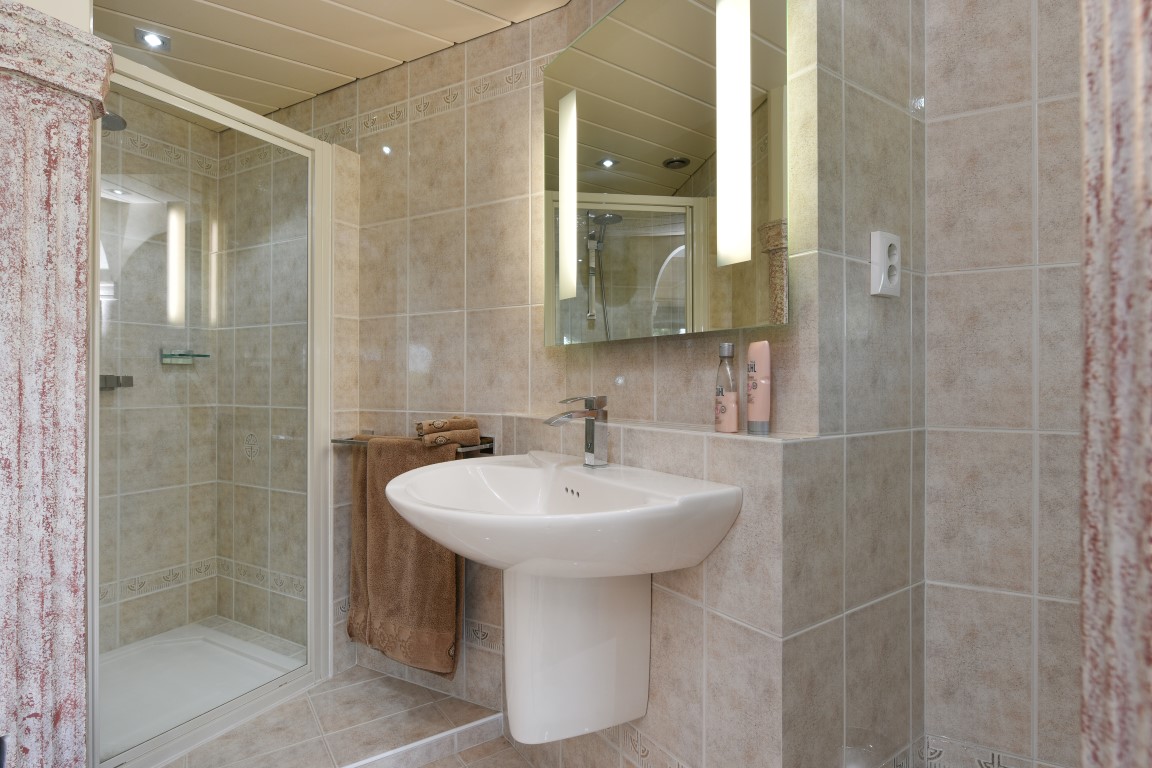 De huidige bewoners hechten veel waarde aan kwaliteit van leven waarbij rust, comfort en privacy zeker gewenst zijn. Om reden hiervan is de volledige westvleugel ingericht als royale slaapgelegenheid met privé badkamer en wellness gedeelte. Uw eerste indruk bij binnenkomst zal u doen terugdenken aan uw laatste bezoek aan een professioneel wellness oord waarbij de slaapkamer meer luxe heeft dan een gemiddelde bruidssuite.