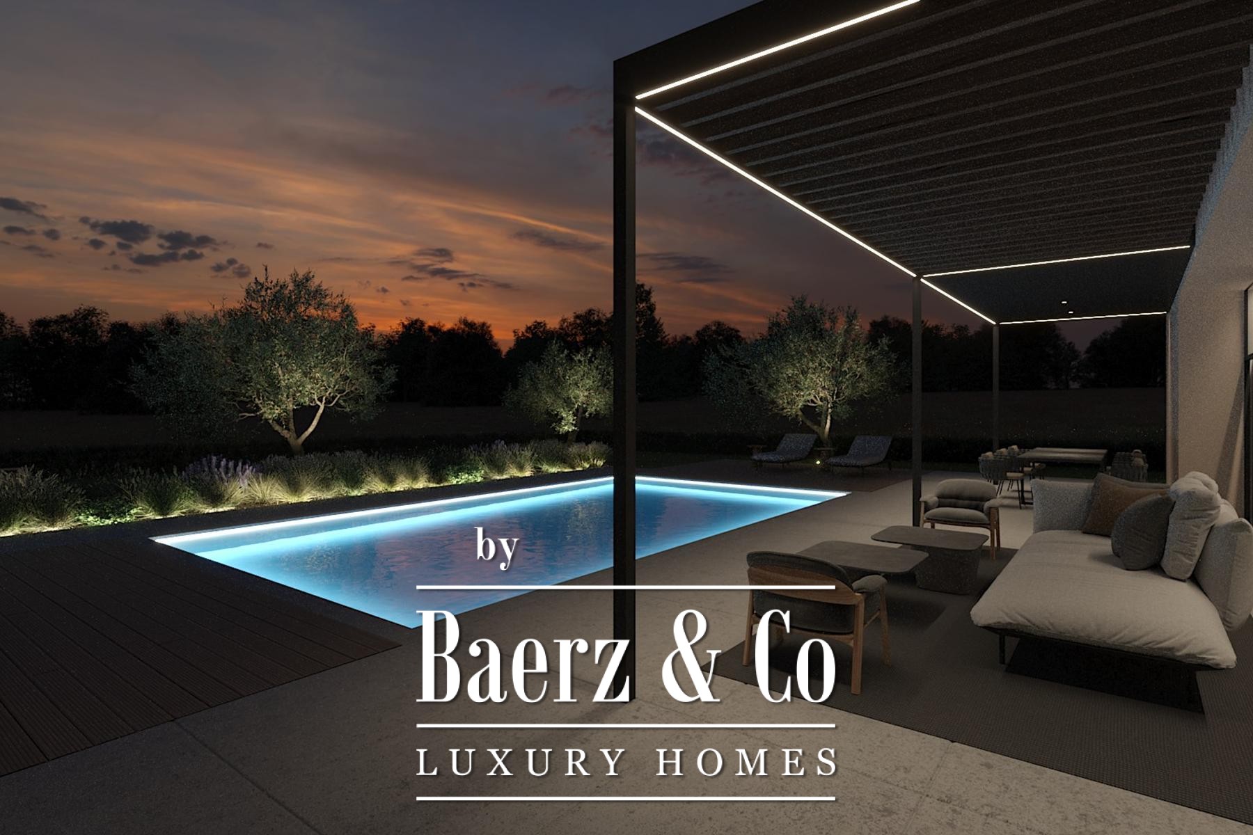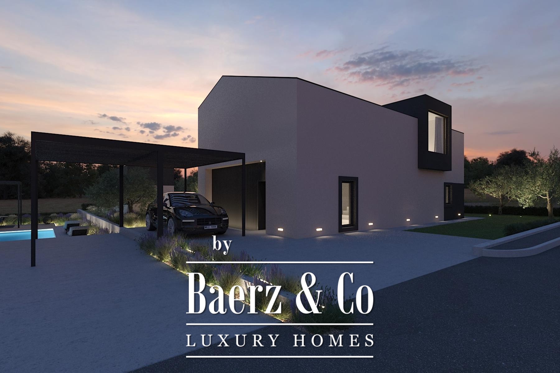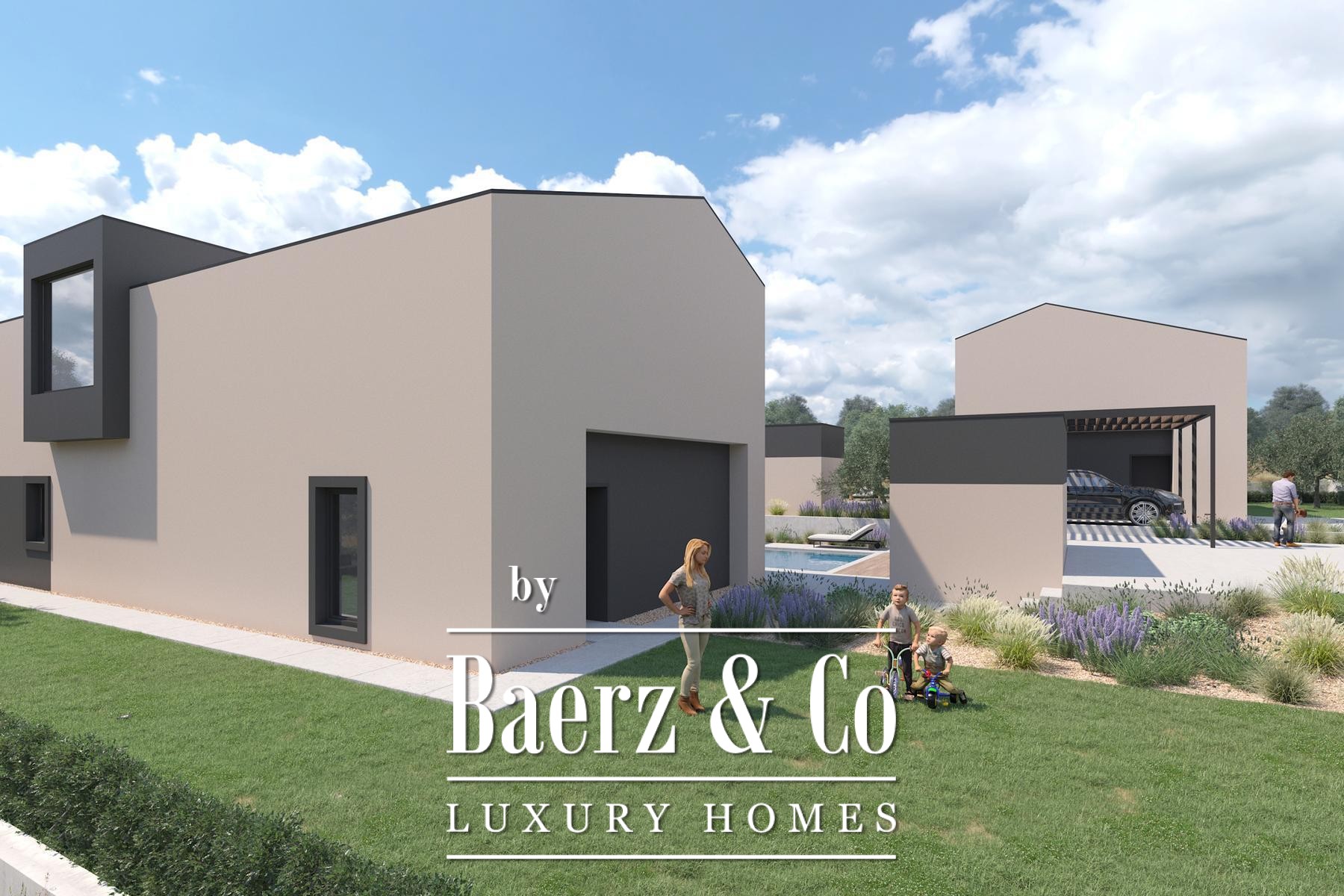 These exclusive villas are located in a small town on the west coast of Istria near the beautiful cities of Poreč and Rovinj. East-south-west orientations. Villa with a net usable area of 197 m2 (first floor with floor plan area of 97 m2, second floor with floor plan area of 99 m2, ), on a plot of 810 m2, divided into two floors. First floor:
