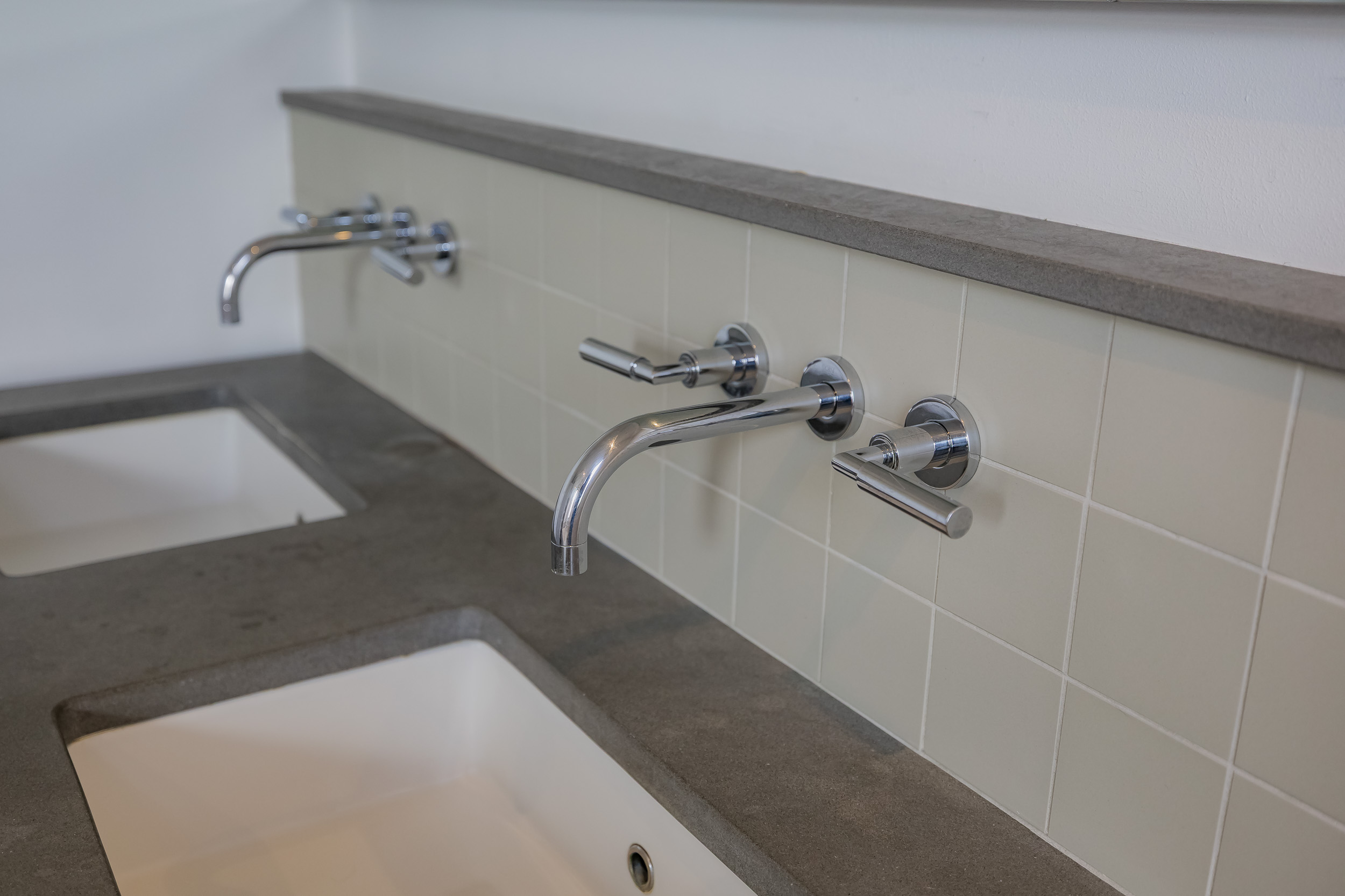 The modern open kitchen with cooking/sink island is fully equipped with high-quality Miele and Bosch appliances, including two ovens, a large freezer, and a large refrigerator. An added bonus: the kitchen has been enlarged by adding a room, which is equipped with an extra stainless steel worktop with sink.