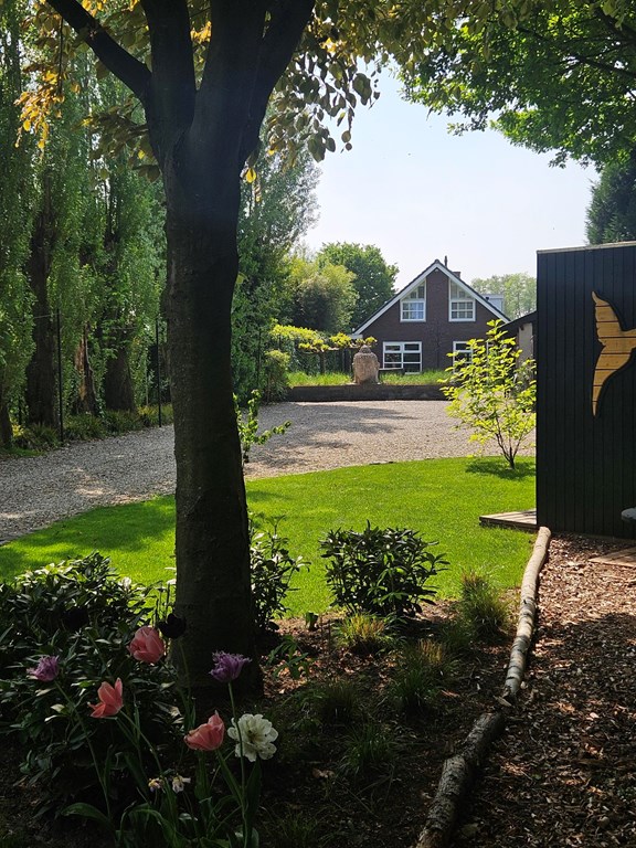 What a garden! Around the home lies a superbly landscaped outdoor realm with privacy and sun at every time of day. A long, stately gravel driveway provides parking for multiple cars. To the rear, a little paradise: colourful borders, manicured lawn, mature trees, and inviting corners. Here you’ll also find a modern black sauna, crisply designed with wood and glass—perfect for unwinding. At the heart: a veranda with glass walls, outdoor fireplace, BBQ area, seating, and a TV connection—year-round enjoyment. Adjacent is a large storage area with wood store. At the water’s edge there’s ample space for extra seating and—perhaps best of all—a private jetty with lounge benches. Take a dip, moor your boat, or simply soak up the view. This is living at its best.
