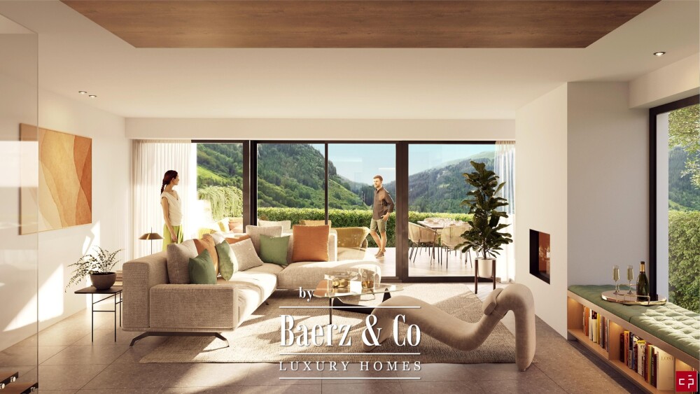 High-end finishes set an understated tone, complemented by quality materials and carefully managed transitions between indoors and out. Private gardens extend the living area, ideal for moments of quiet reflection, open-air gatherings, or a peaceful swim should a pool be desired. Terraces and balconies expand the sense of space, while features such as a garage, practical laundry room, and Minergie heating speak to life designed for both beauty and utility.