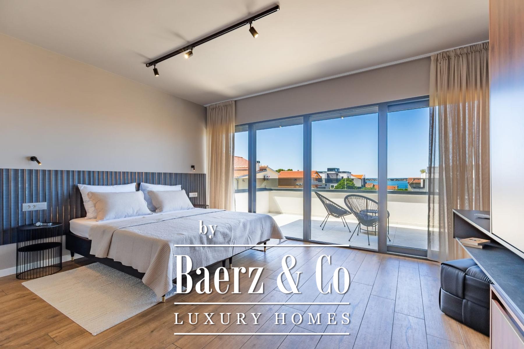 We present to you this beautiful and fully equipped villa with a swimming pool in a small town near Zadar, Vrsi, which is only 150 meters from the sea, the well-maintained local beach and all other necessary amenities key to a quality life or vacation.The villa has a total net area of 160m2, while its gross area is 261m2. It consists of a ground floor, first floor and a spacious roof terrace with a jacuzzi and a summer kitchen.On the ground floor of 92.40m2 there is a comfortable kitchen with a dining room, a living room, a bathroom, a hallway and a staircase leading to the 1st floor.The first floor of 96.5m2 consists of three bedrooms with en suite bathrooms, one of which is a master bedroom, and a hallway and a balcony of 13.9m2.The beautiful roof terrace of 72.80m2 is equipped with a jacuzzi and a summer kitchen, and offers a sea view that will enchant you.In