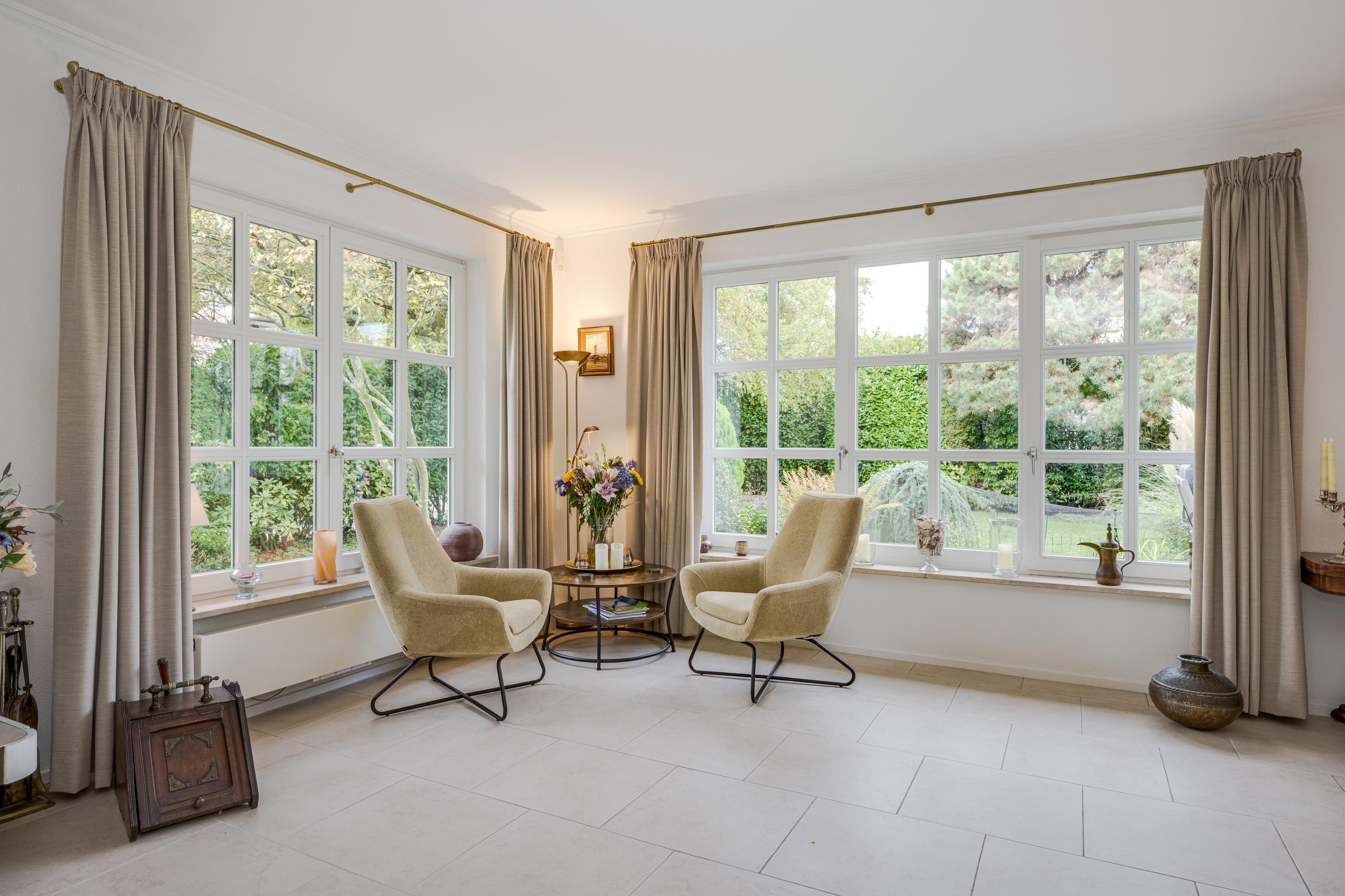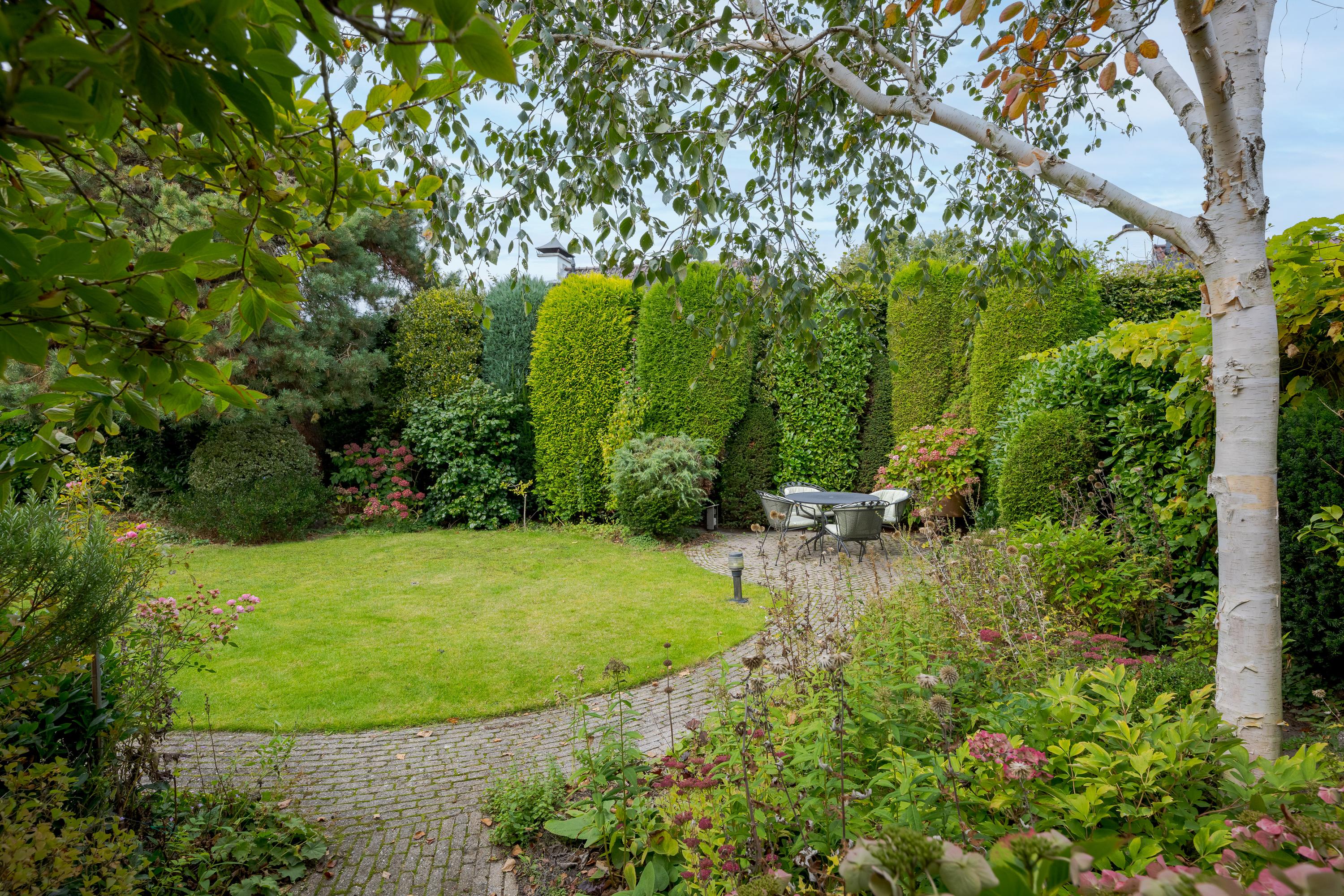 This luxurious villa stands on a spacious, sunny plot of no less than 754 m², right on the edge of the forest. Surrounding it is a beautifully landscaped, sunny garden with plenty of privacy, a wonderful place to relax with family and friends.