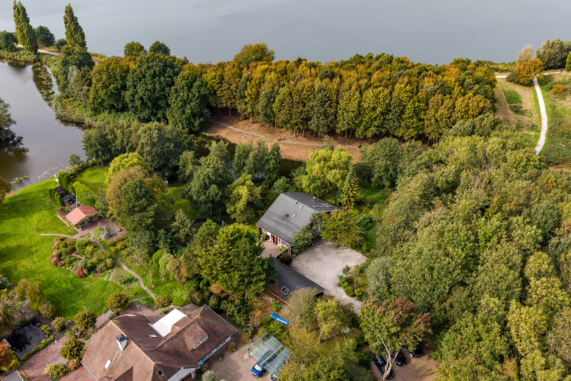 This is a perfect spot for mooring your boat and swimming in peace. There is no through passage, and the property is nestled behind the island. Several other villas are nestled in the greenery surrounding the lake, and only at the other end is there a passage to the Kaag River and the canal leading to Leiden's city center.