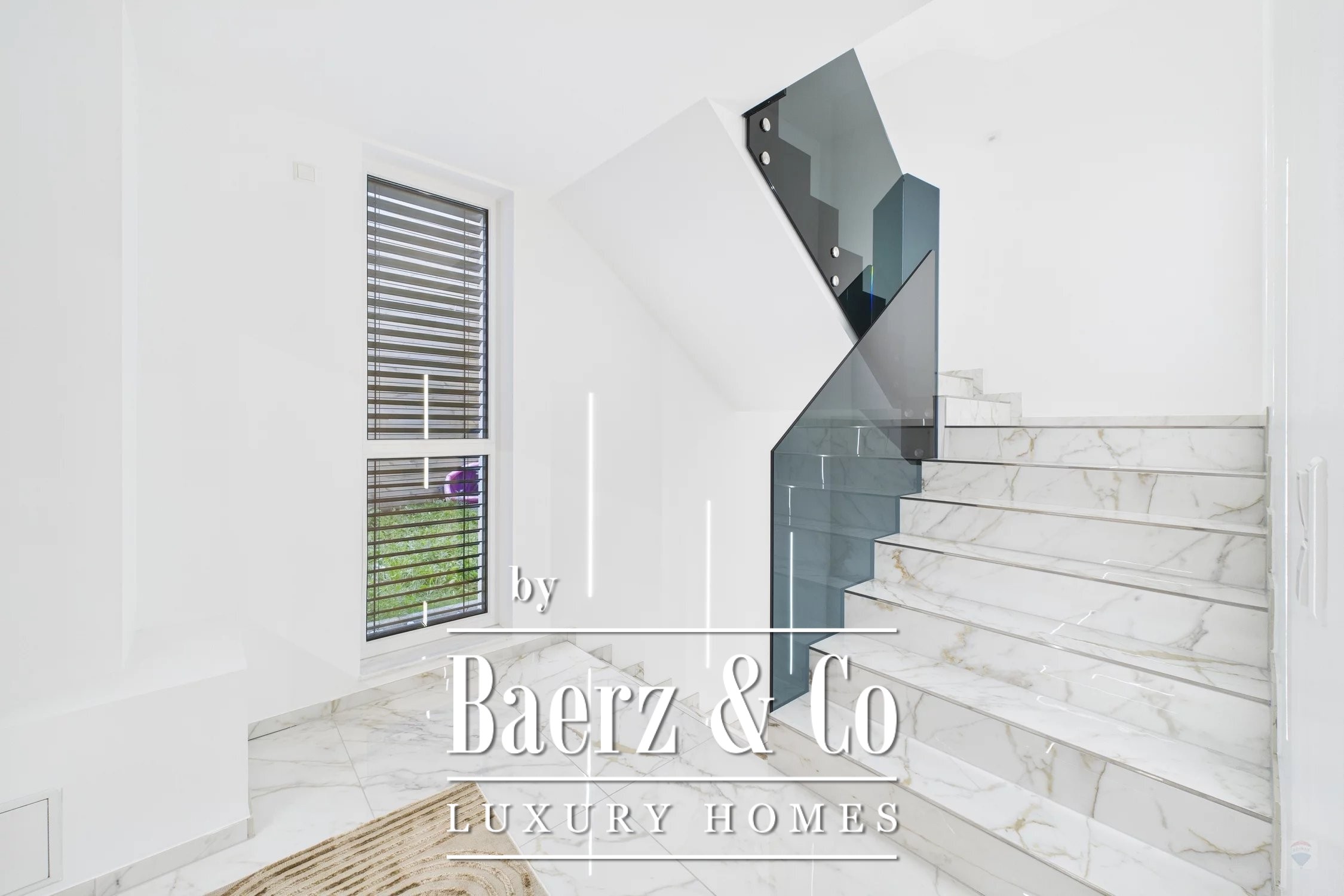 To complete this exceptional property, you'll benefit from a large two-car garage with automatic door, two outdoor parking spaces, as well as modern amenities such as underfloor heating, a double-flow ventilation system, triple glazing with slatted blinds and fiber optics.