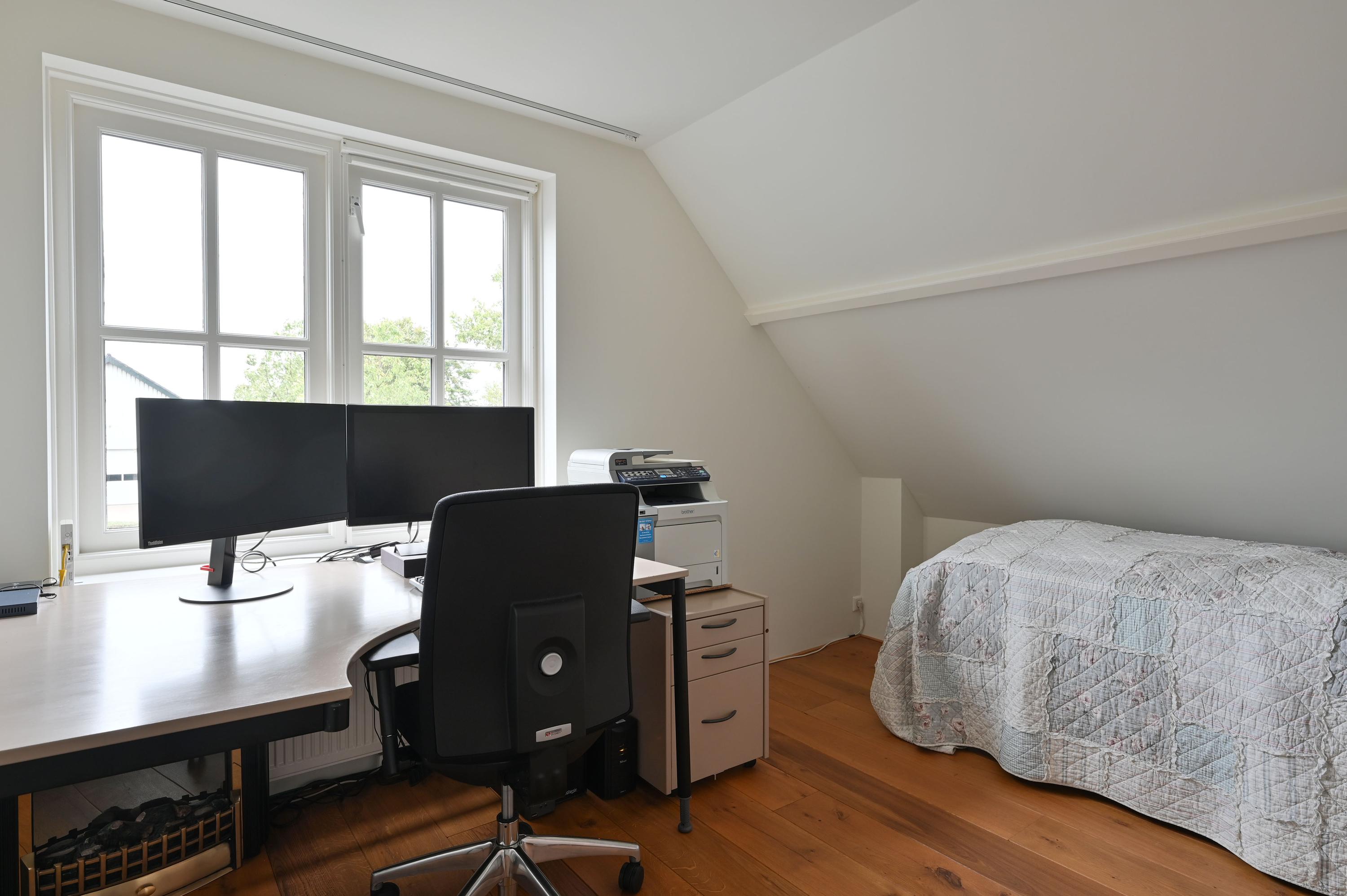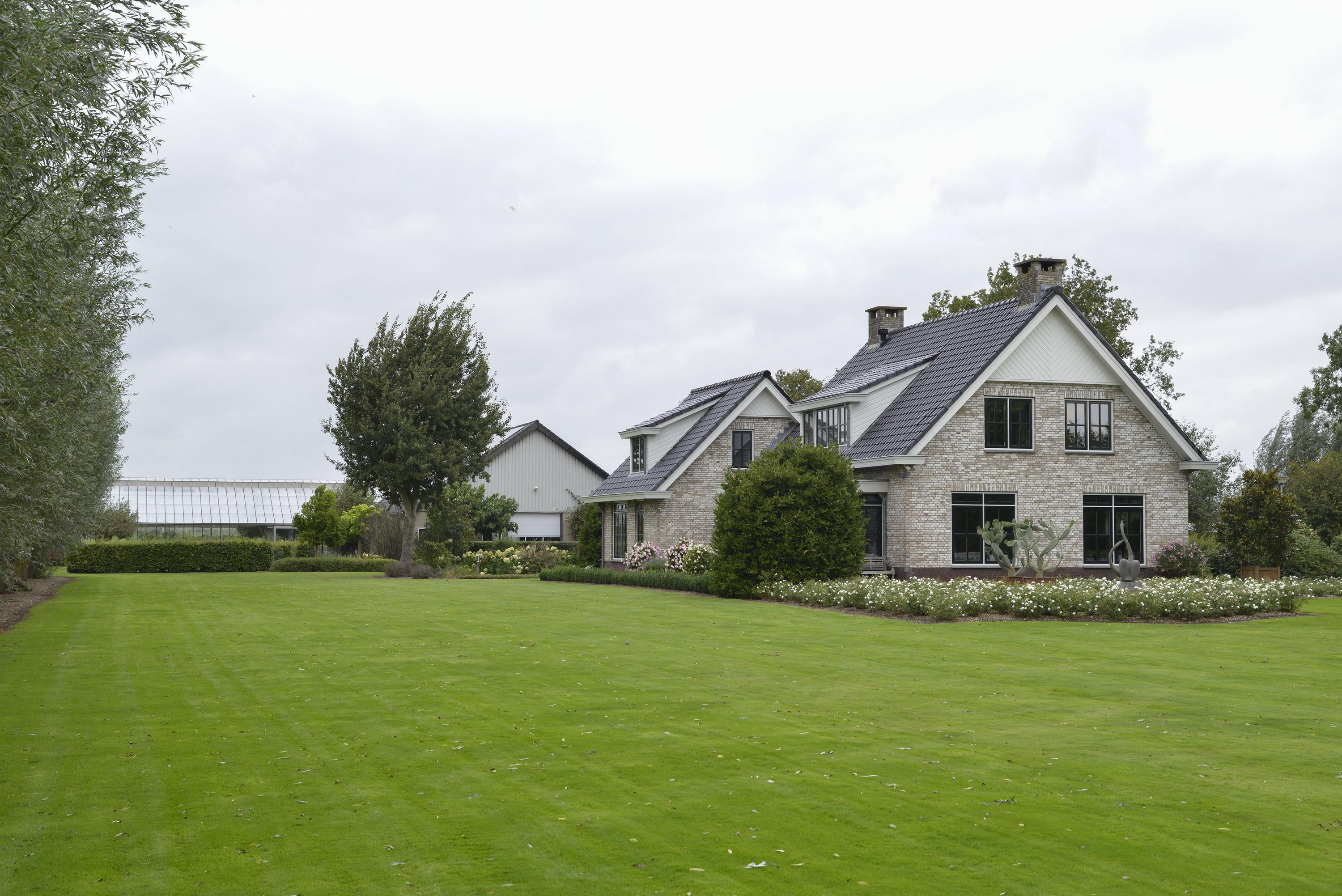 GARDEN Behind the house is a vast area where several cars can be parked effortlessly. Here you will also find an impressive shed of no less than 294 m² and a beautiful greenhouse of 1,093 m², perfect for gardening enthusiasts and for recreational space. The shed is equipped with a large overhead door on both the front and rear sides and also has a convenient walk-in door. Inside, you will find a practical office space and a toilet. The shed is not only spacious and functional but also sustainably equipped. Thanks to an efficient pellet stove, the space stays comfortably warm, while a rainwater storage system provides an eco-friendly water source. The roof is equipped with no less than 68 solar panels, making the shed nearly energy self-sufficient. These smart additions make the shed ideal not only for storage or workspace but also future-proof and environmentally friendly. From the shed, you can walk directly into the greenhouse, a paradise for anyone with green fingers. Here you can grow your own vegetables and fruits, such as juicy tomatoes or delicious grapes. A unique opportunity to realize your dream of your own nursery, with all the space and possibilities you could wish for.
