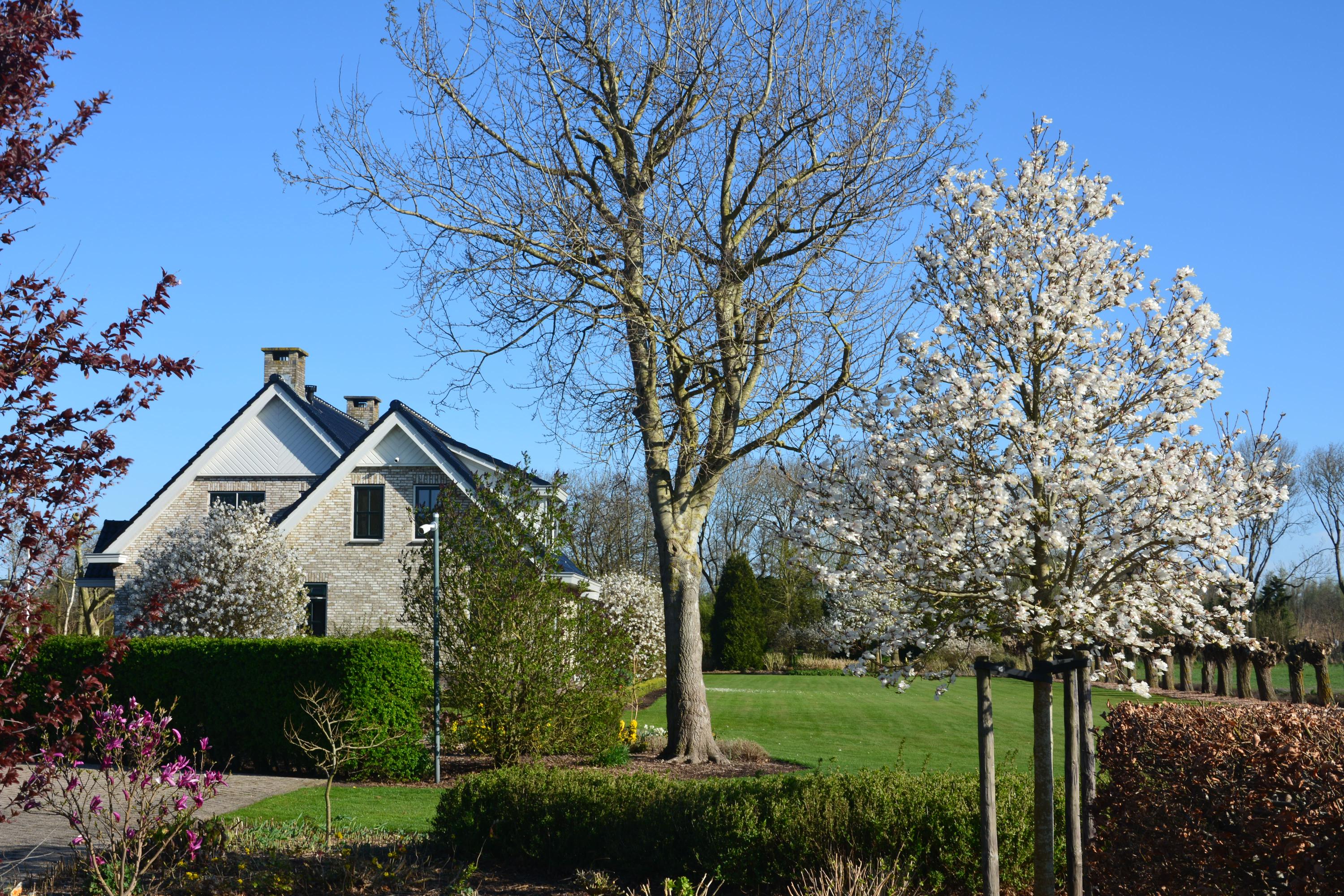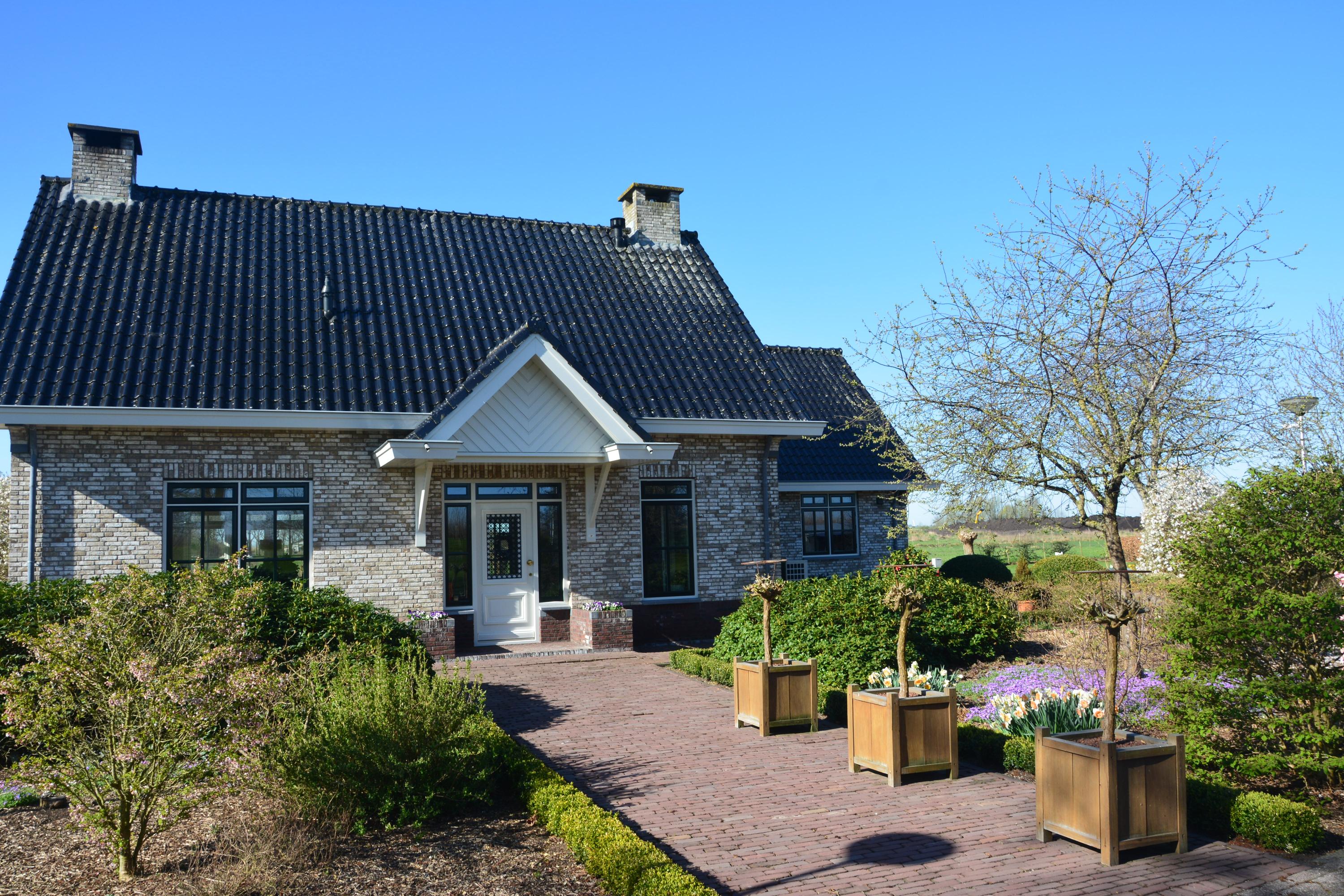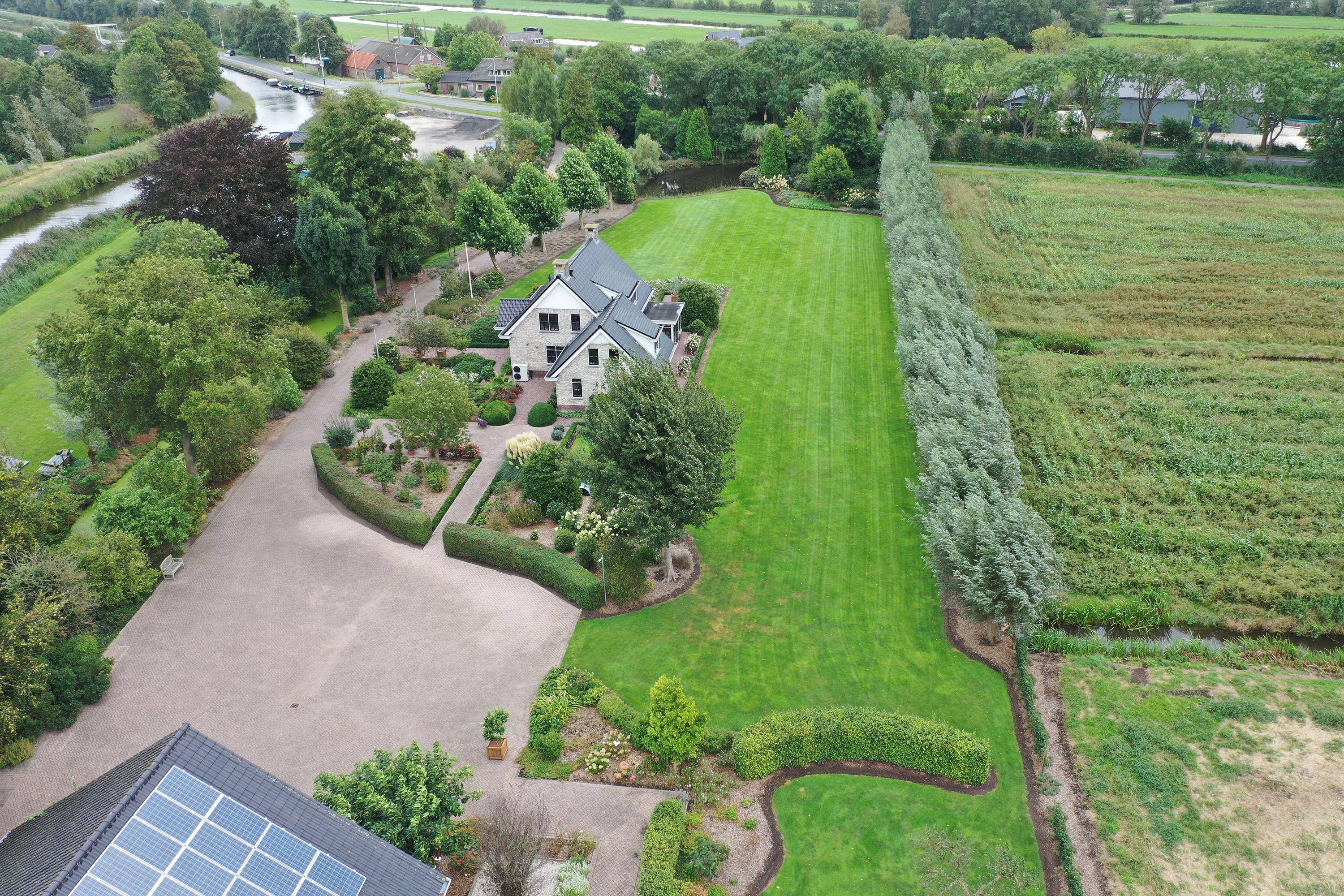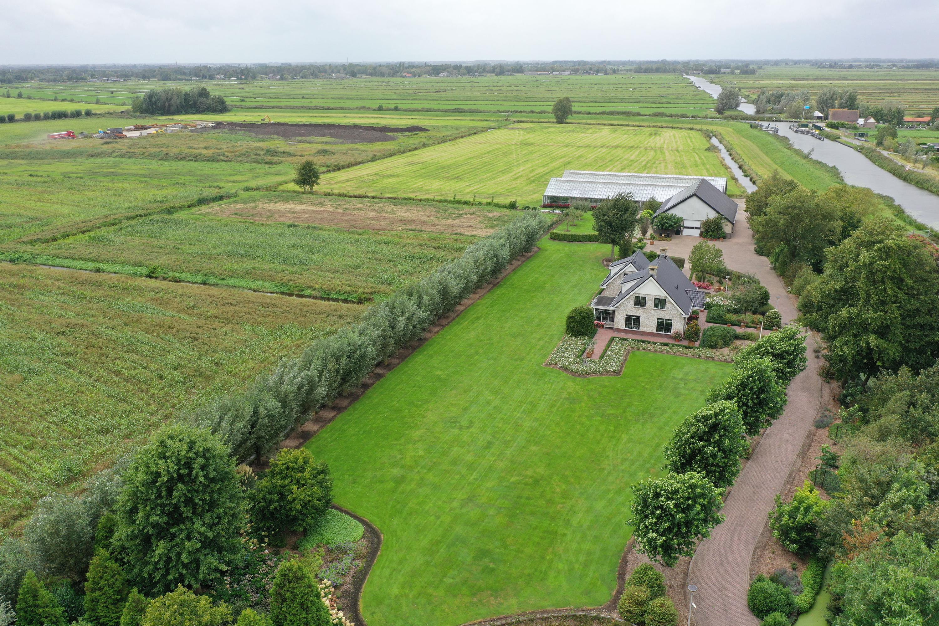 Behind the shed extends an expansive grassy field of over 30,000 m², ideal for nature and space lovers. Keeping animals such as horses, sheep, goats, or chickens is no problem here. The garden around the house is a true masterpiece of greenery and tranquility. With beautifully maintained (fruit) trees, shrubs, blooming plants, and an abundance of greenery, this garden offers an idyllic retreat for relaxation and experiencing nature. Additionally, next to the dike is a captivating natural garden where you can enjoy wildflowers and the beauty of nature in its purest form.